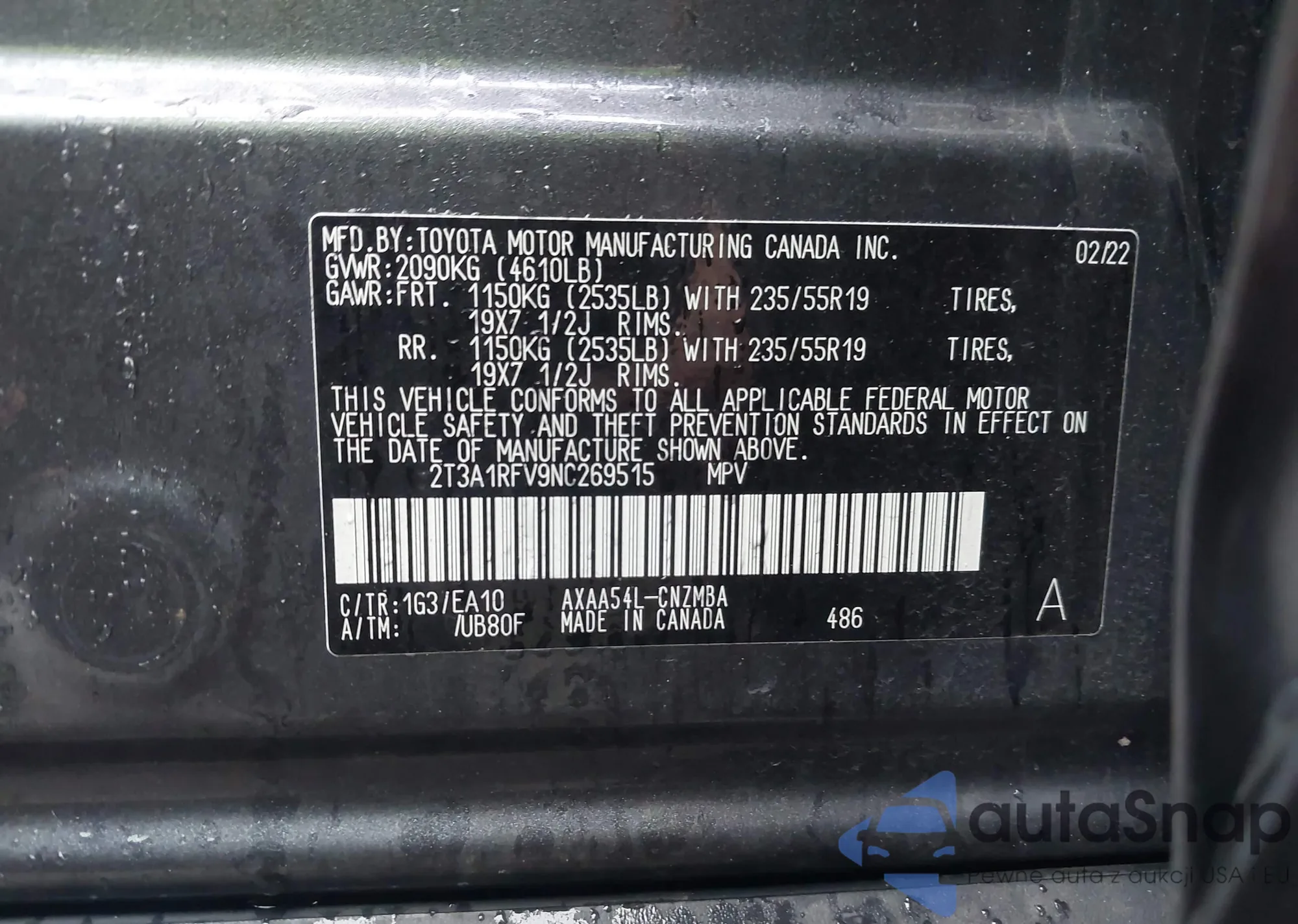 • VIN 2T3A1RFV9NC269515