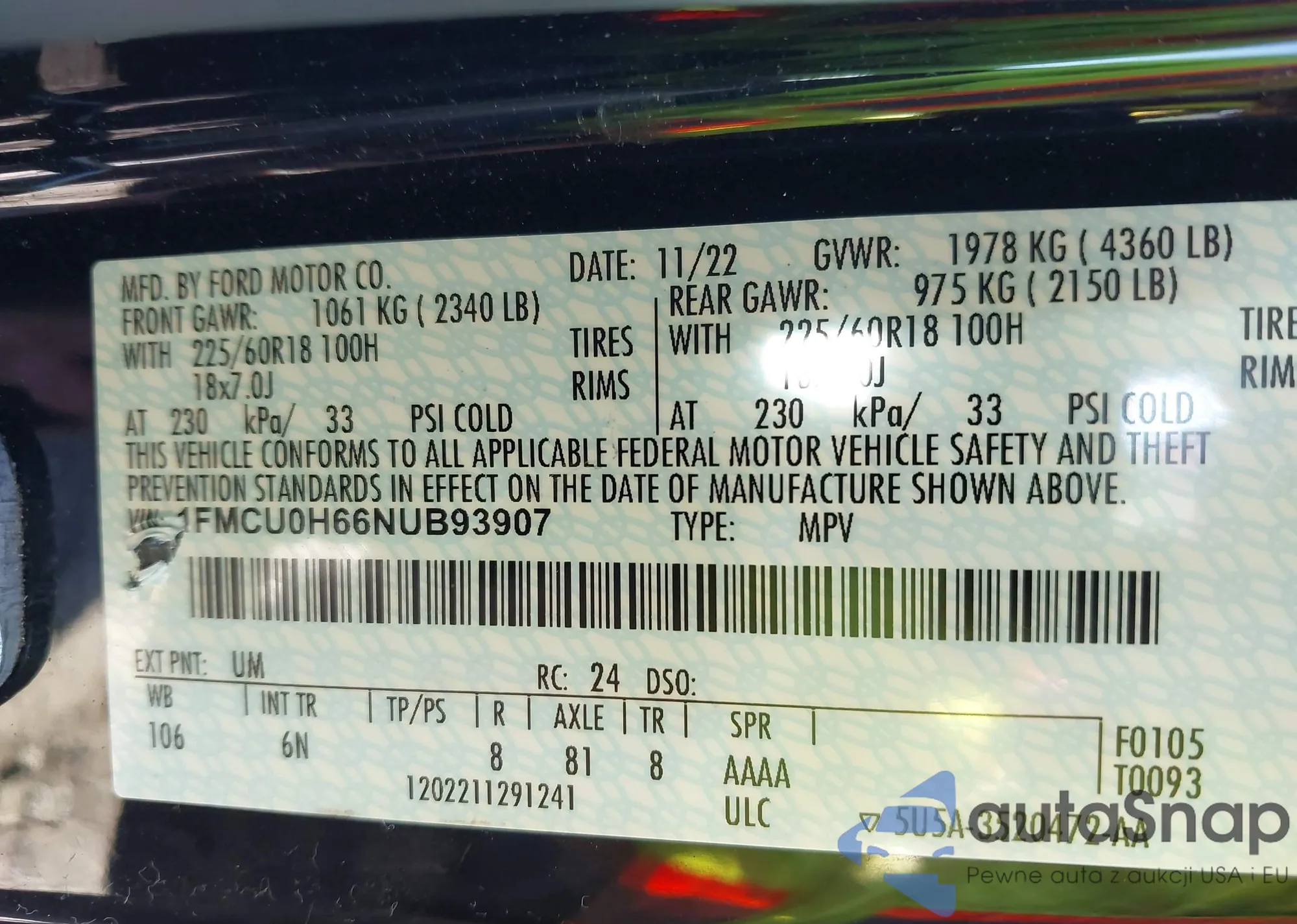 • VIN 1FMCU0H66NUB93907
