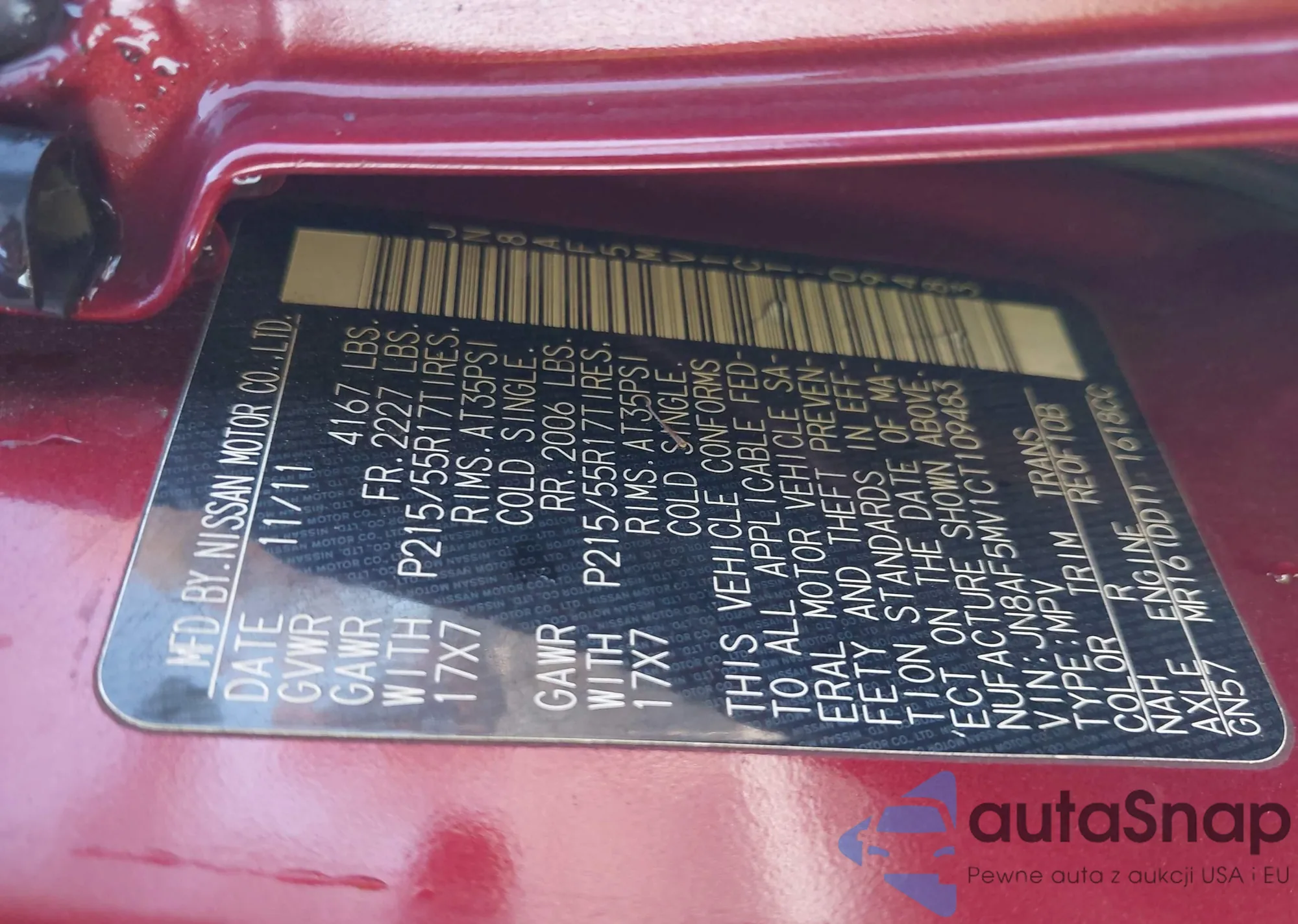 LOT: 43716329 VIN: JN8AF5MV1CT109483