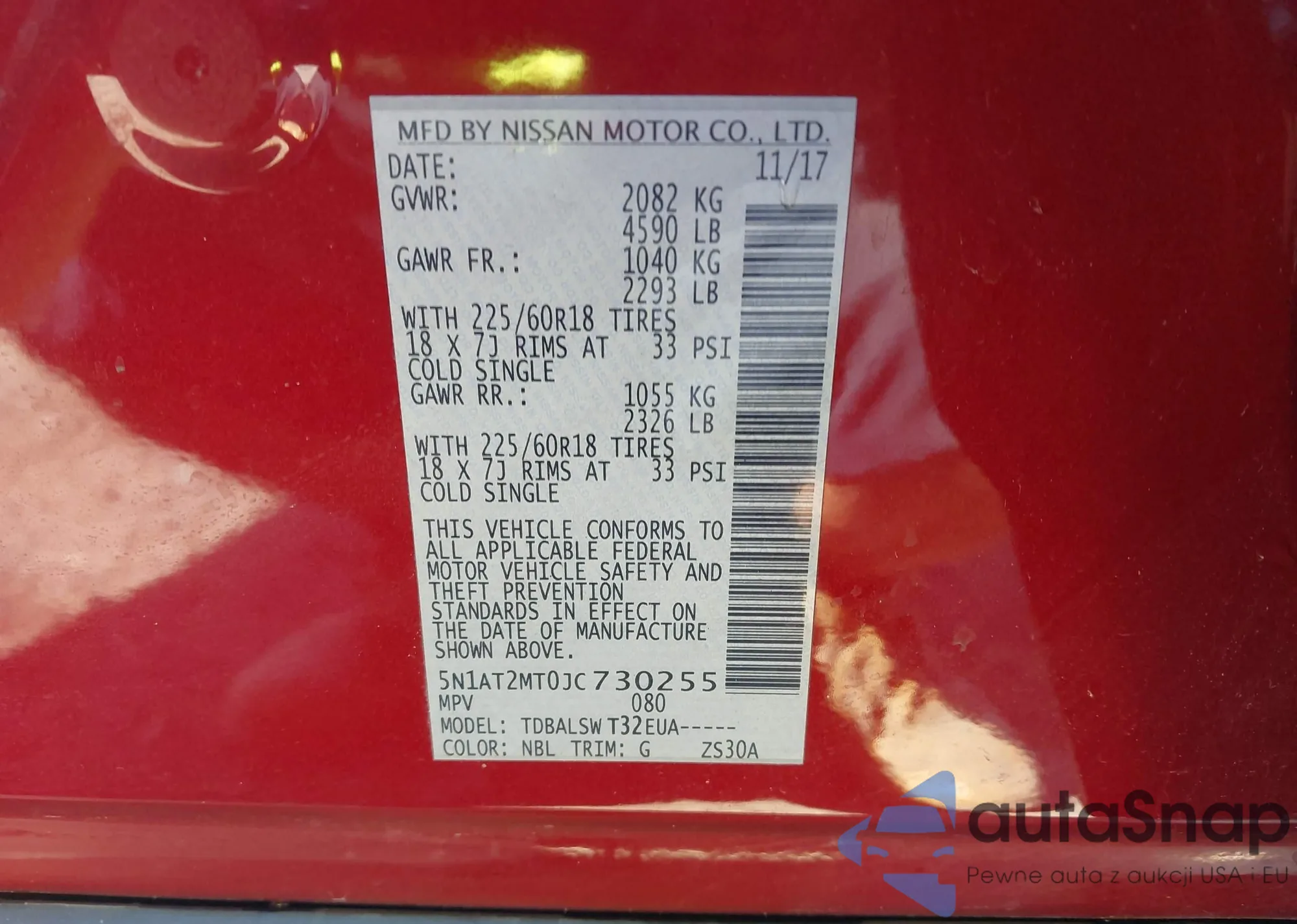 LOT: 43407900 VIN: 5N1AT2MT0JC730255