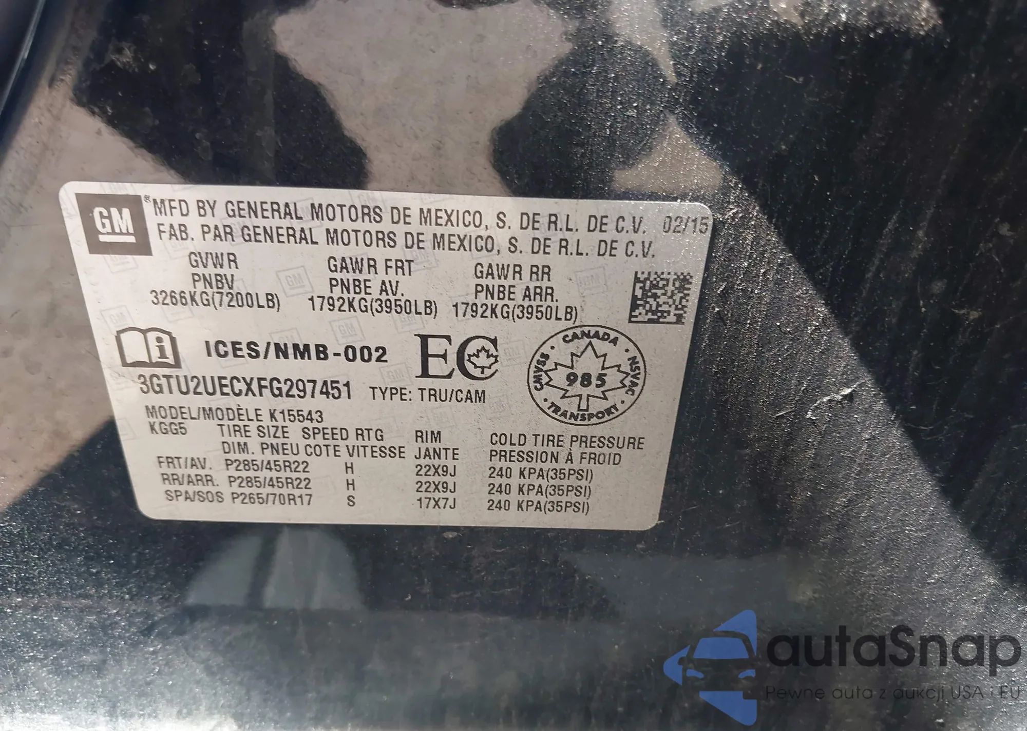 LOT: 43126273 VIN: 3GTU2UECXFG297451