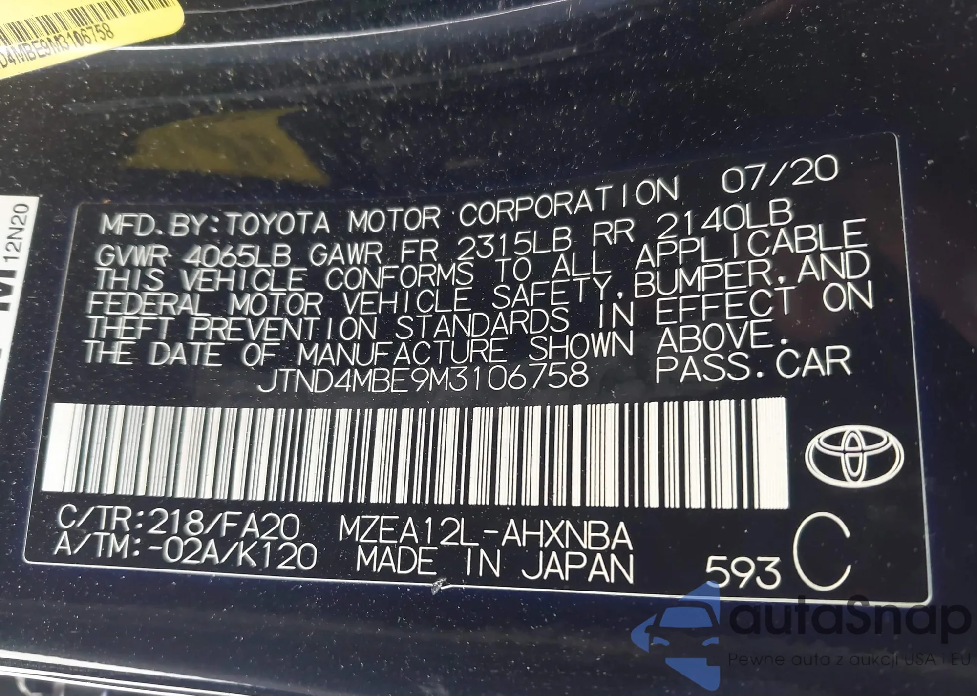 • VIN JTND4MBE9M3106758