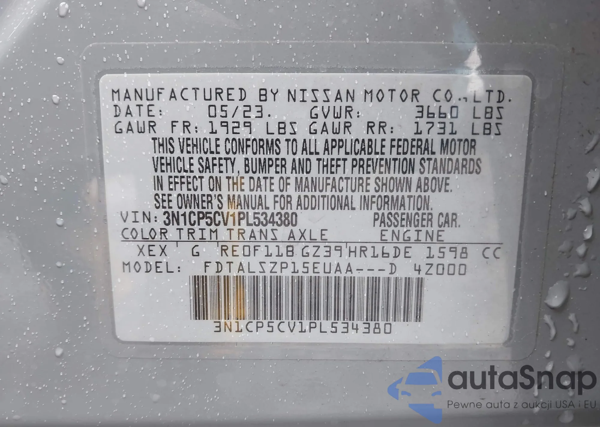 • VIN 3N1CP5CV1PL534380