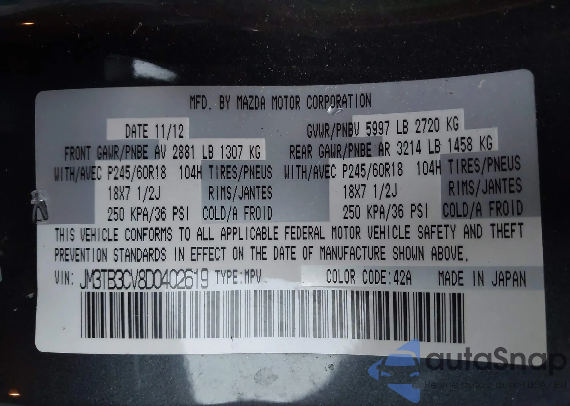 • VIN 5TFMU4FN9DX013231