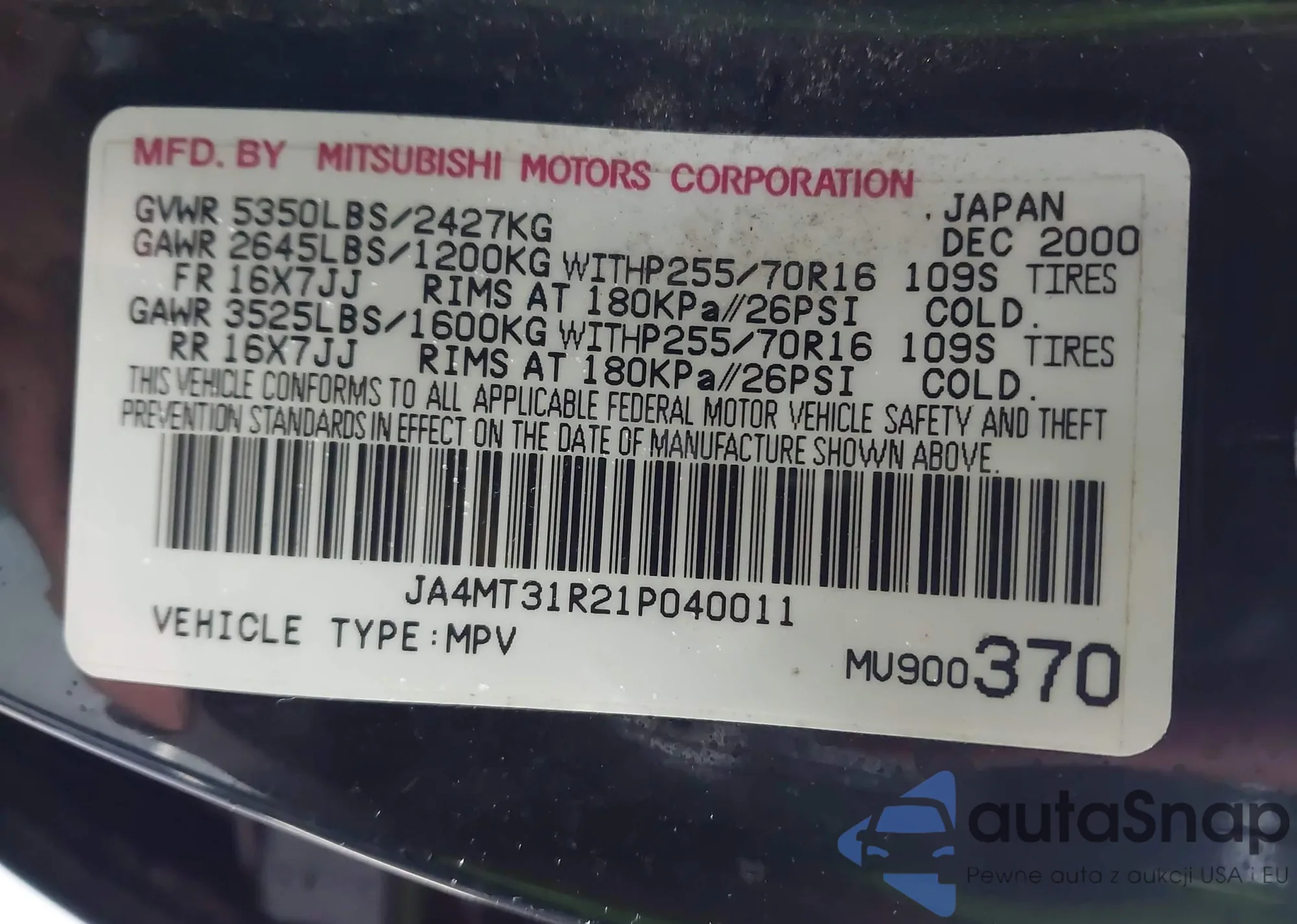 • VIN JA4MT31R21P040011