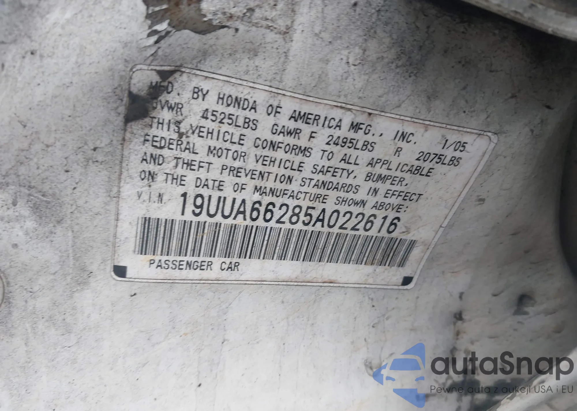 • VIN 5J6RM3H35CL026568