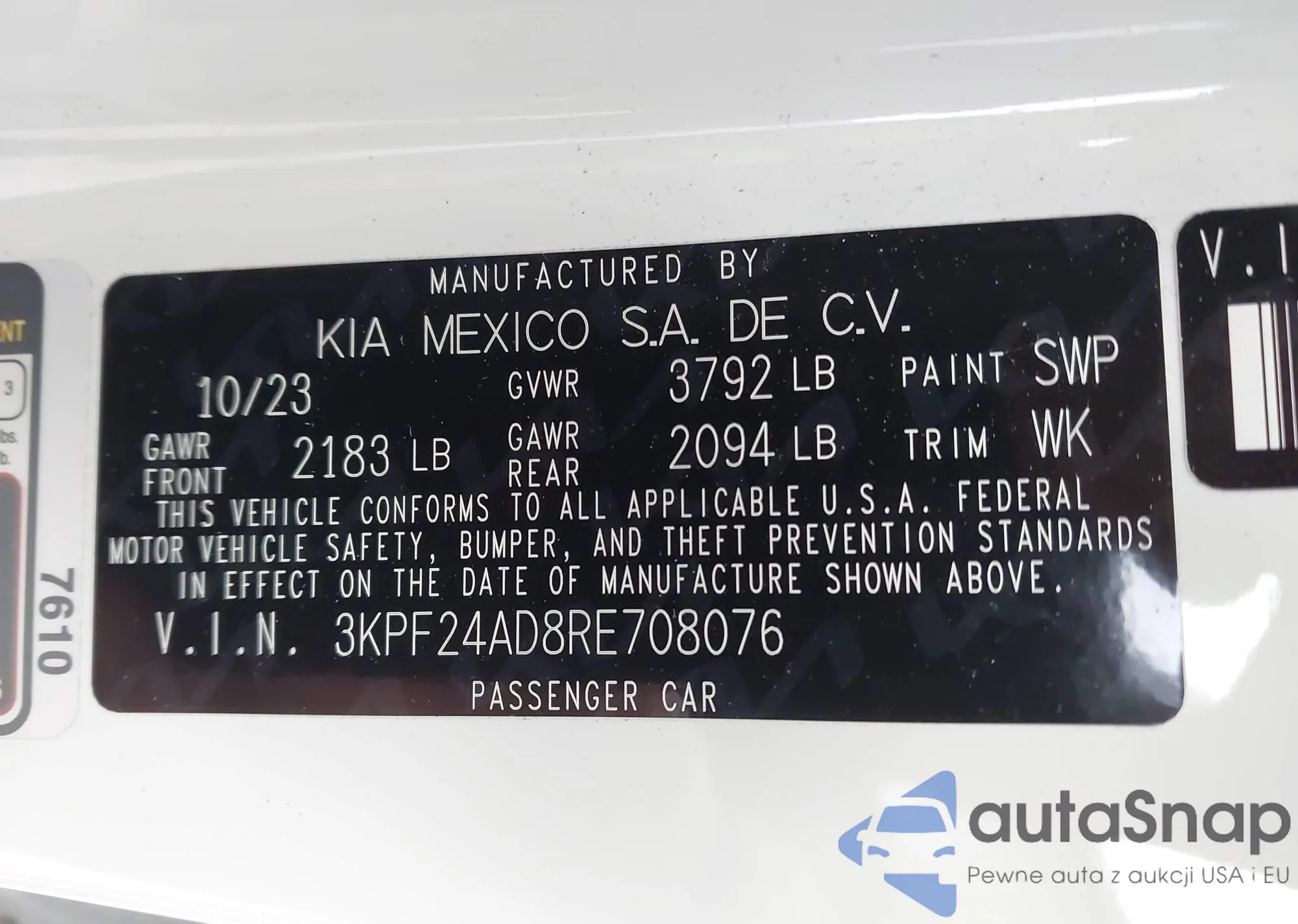 • VIN 3KPF24AD8RE708076