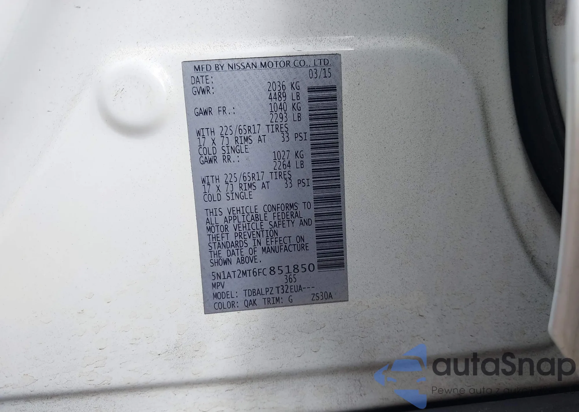 • VIN 5N1AT2MT6FC851850