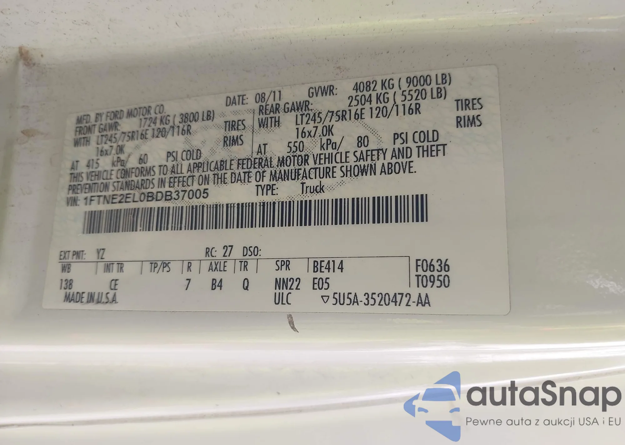 LOT: 43537178 VIN: 1FMHK7D85CGA57338