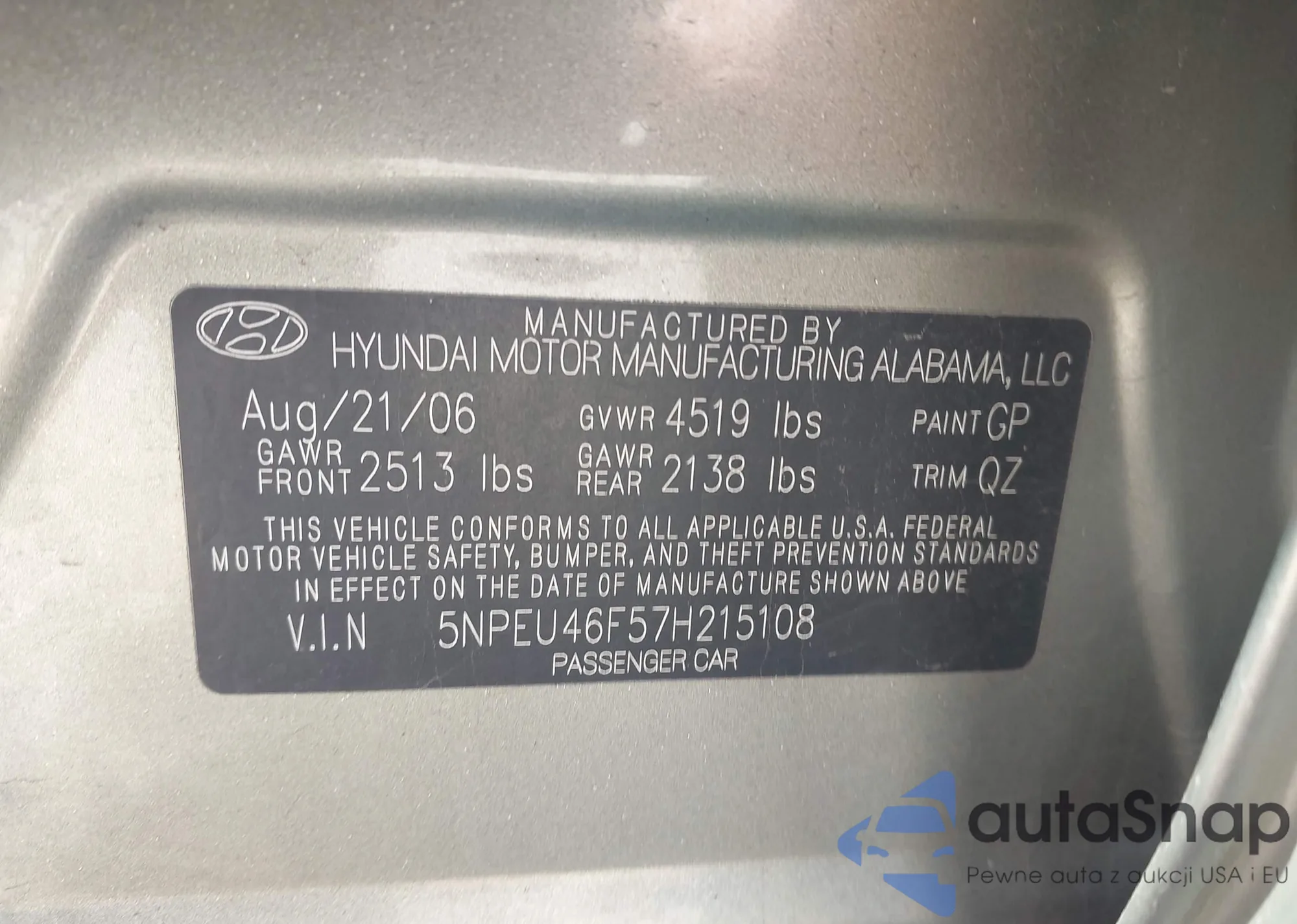 • VIN 5NPEU46F57H215108