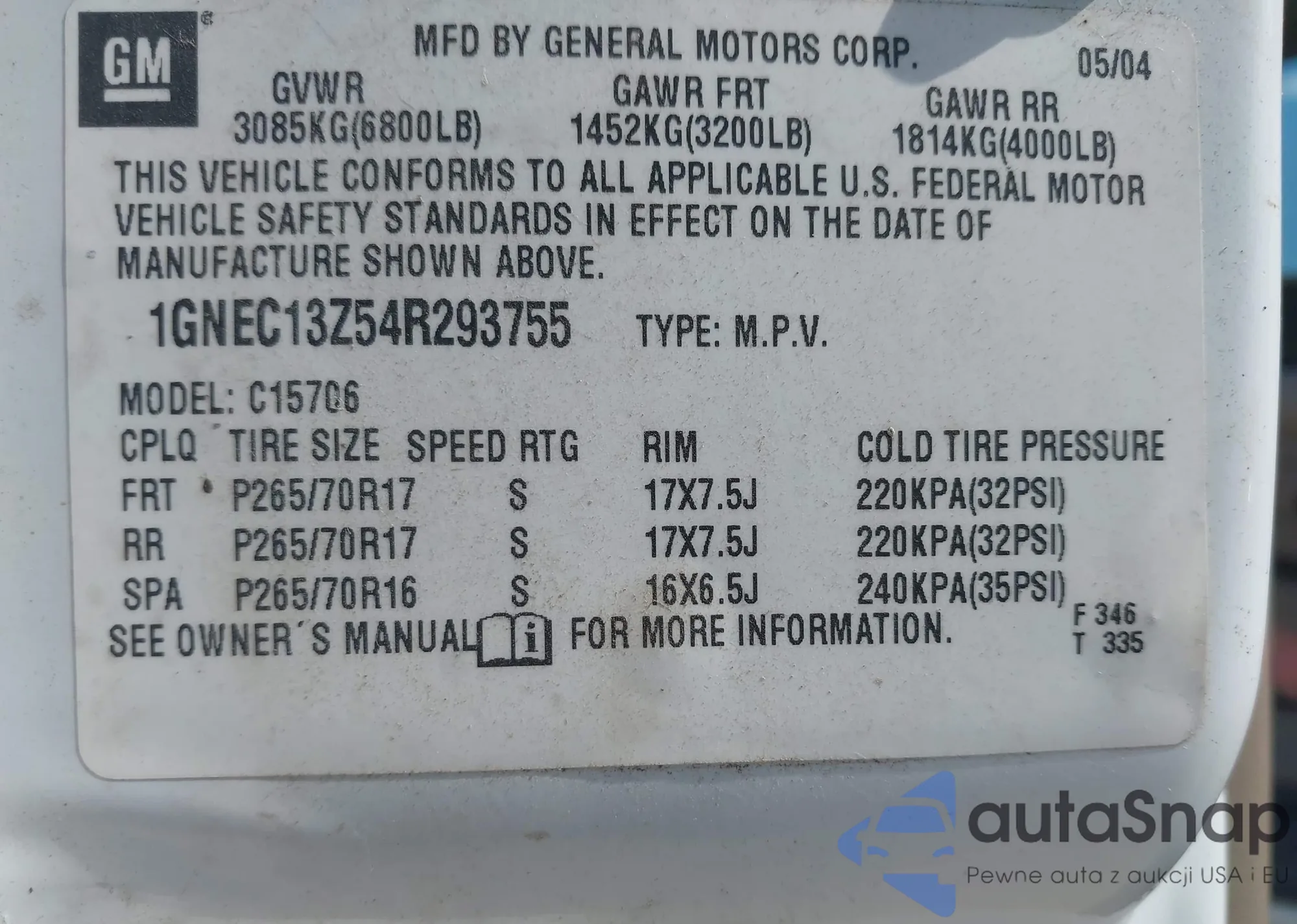 LOT: 43516282 VIN: 5UXFA13585LY04068
