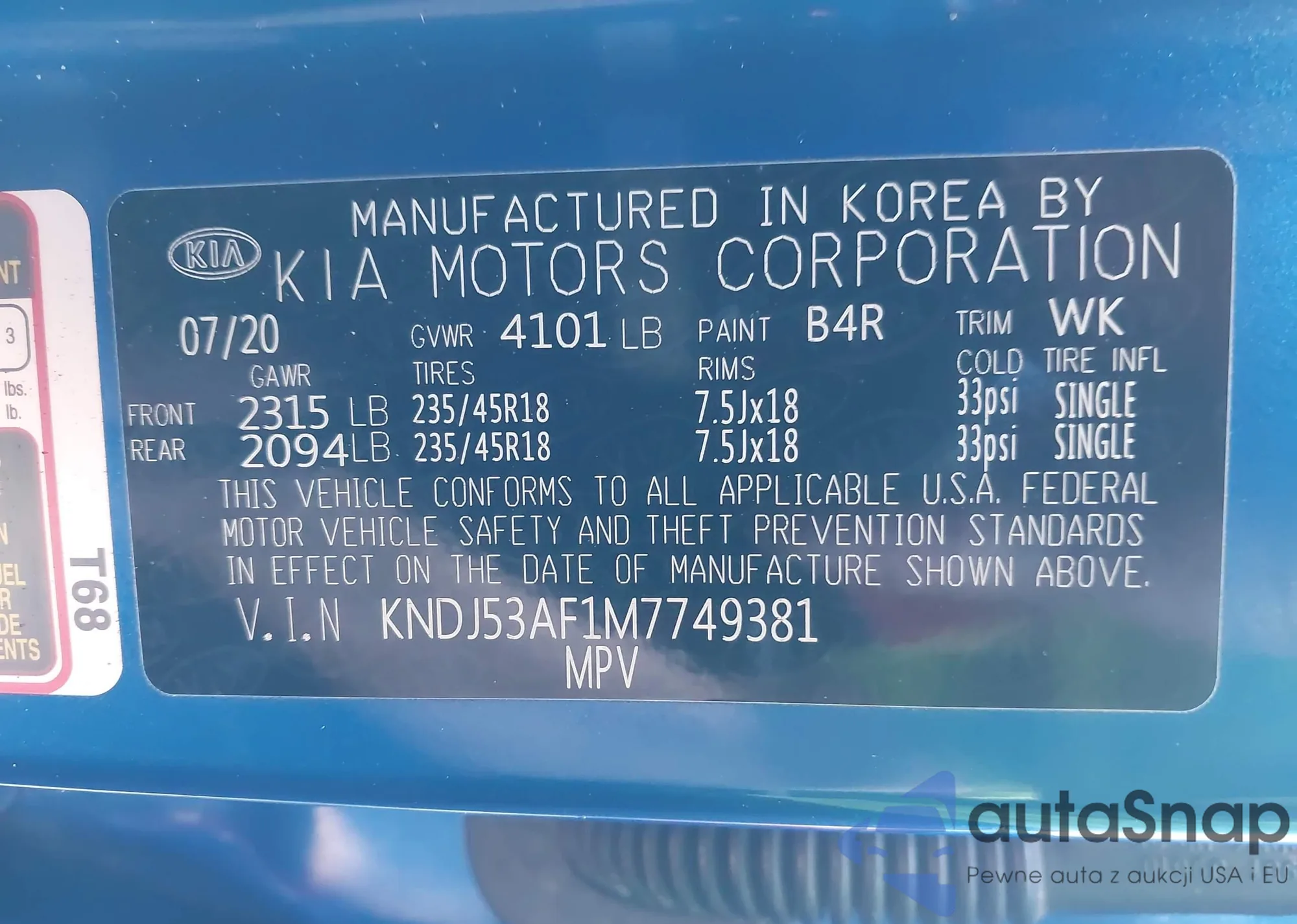 LOT: 43540564 VIN: KNDJ53AF1M7749381