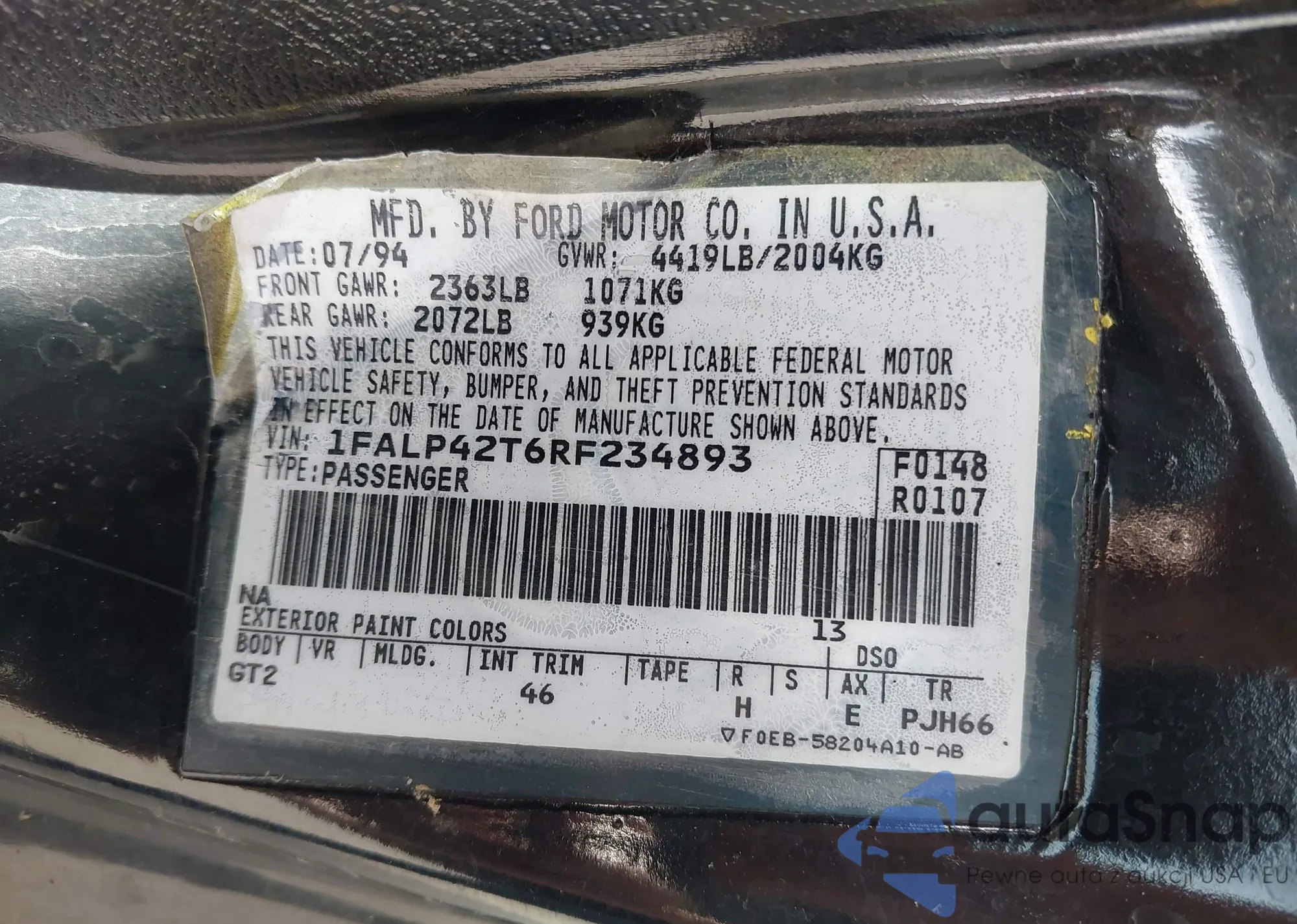• VIN 1FALP42T6RF234893