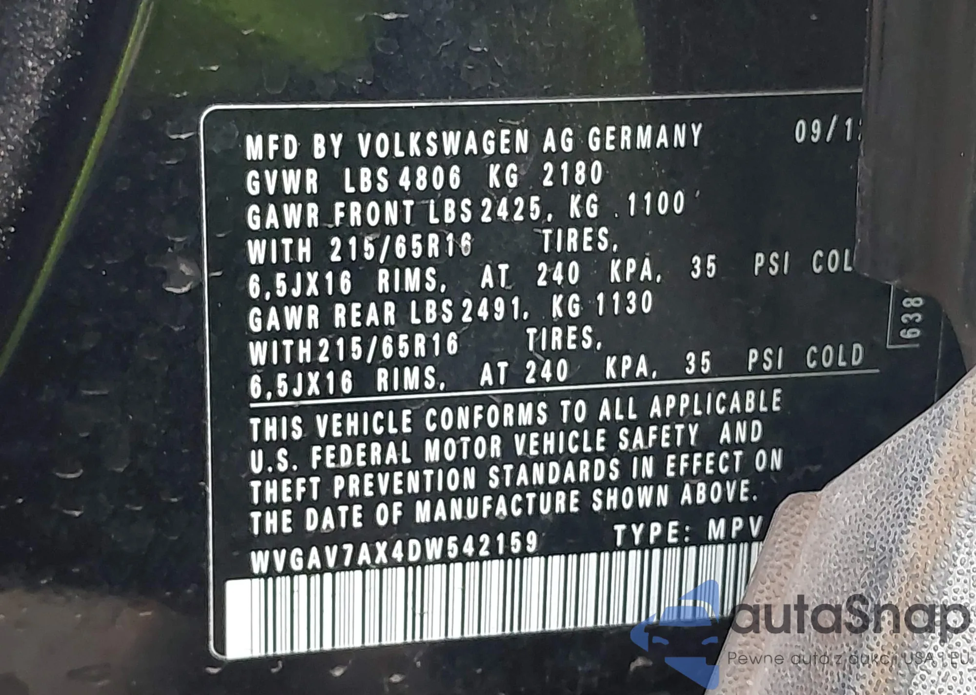 • VIN WVGAV7AX4DW542159