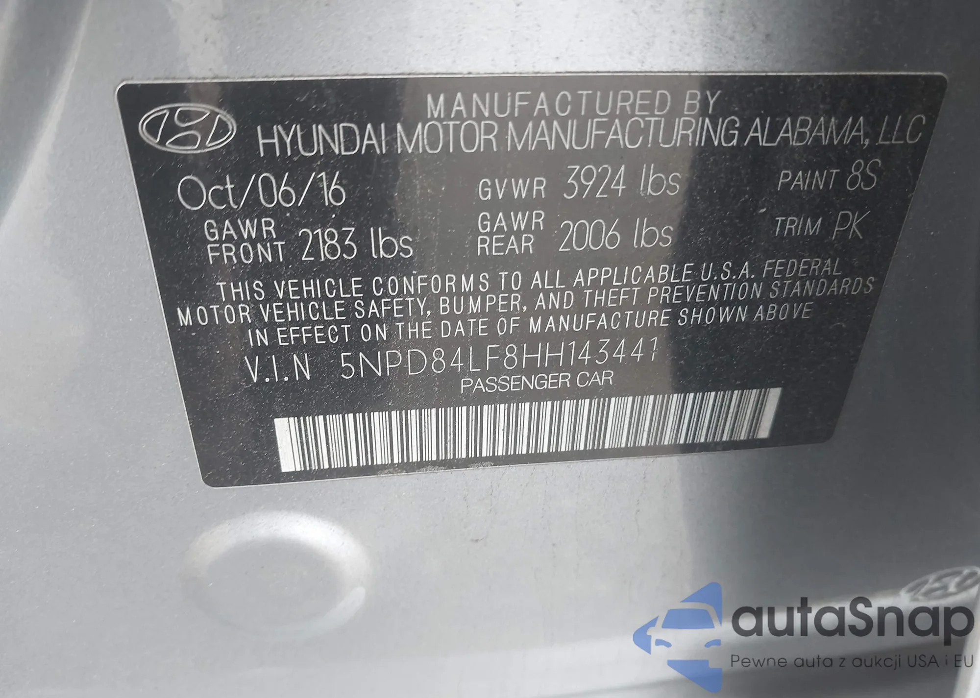 • VIN 5NPD84LF8HH143441