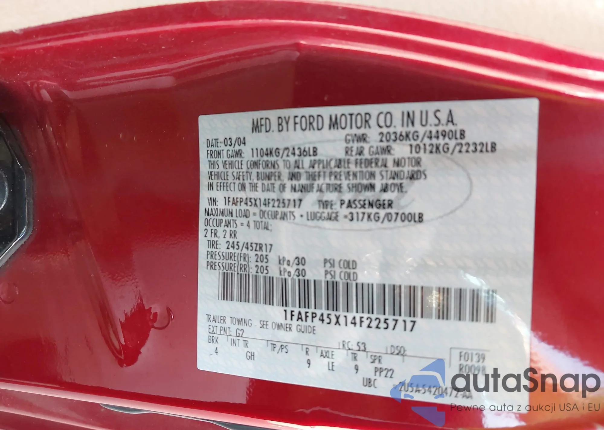 LOT: 43692921 VIN: 1FAFP45X14F225717