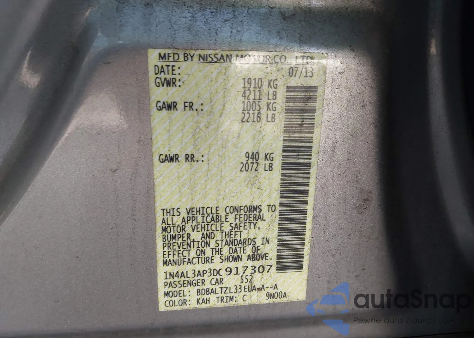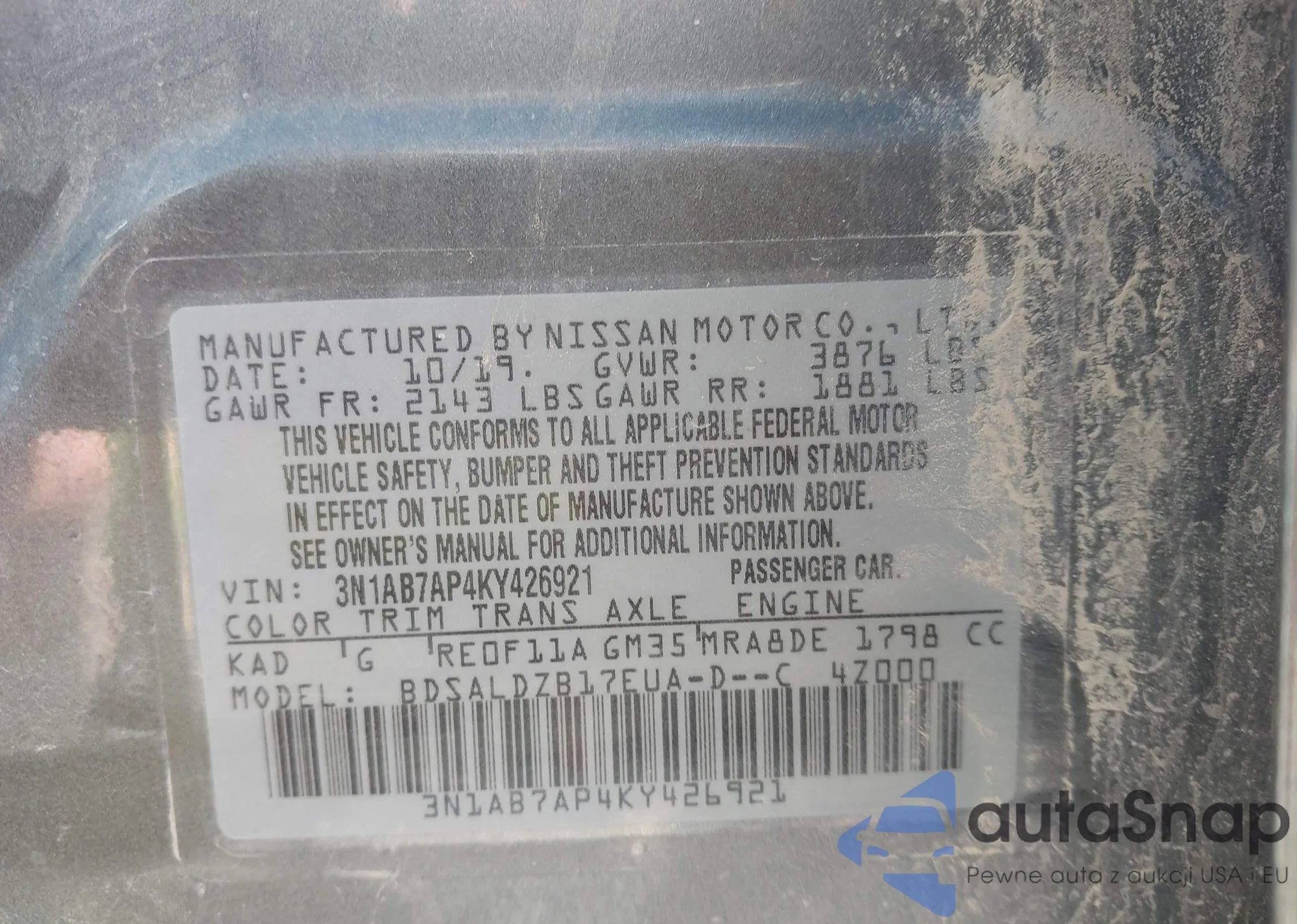 LOT: 43502005 VIN: 3N1AB7AP4KY426921