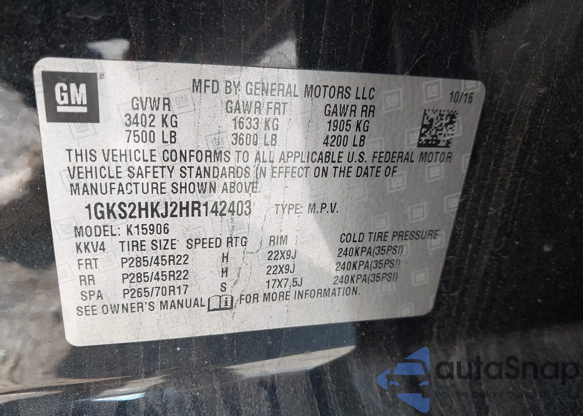 LOT: 43501683 VIN: 1GKS2HKJ2HR142403