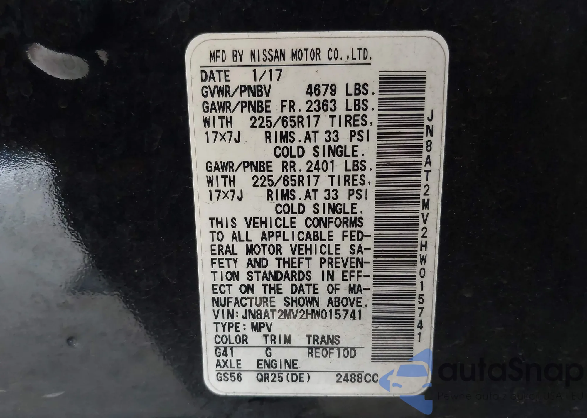 LOT: 43502704 VIN: JN8AT2MV2HW015741