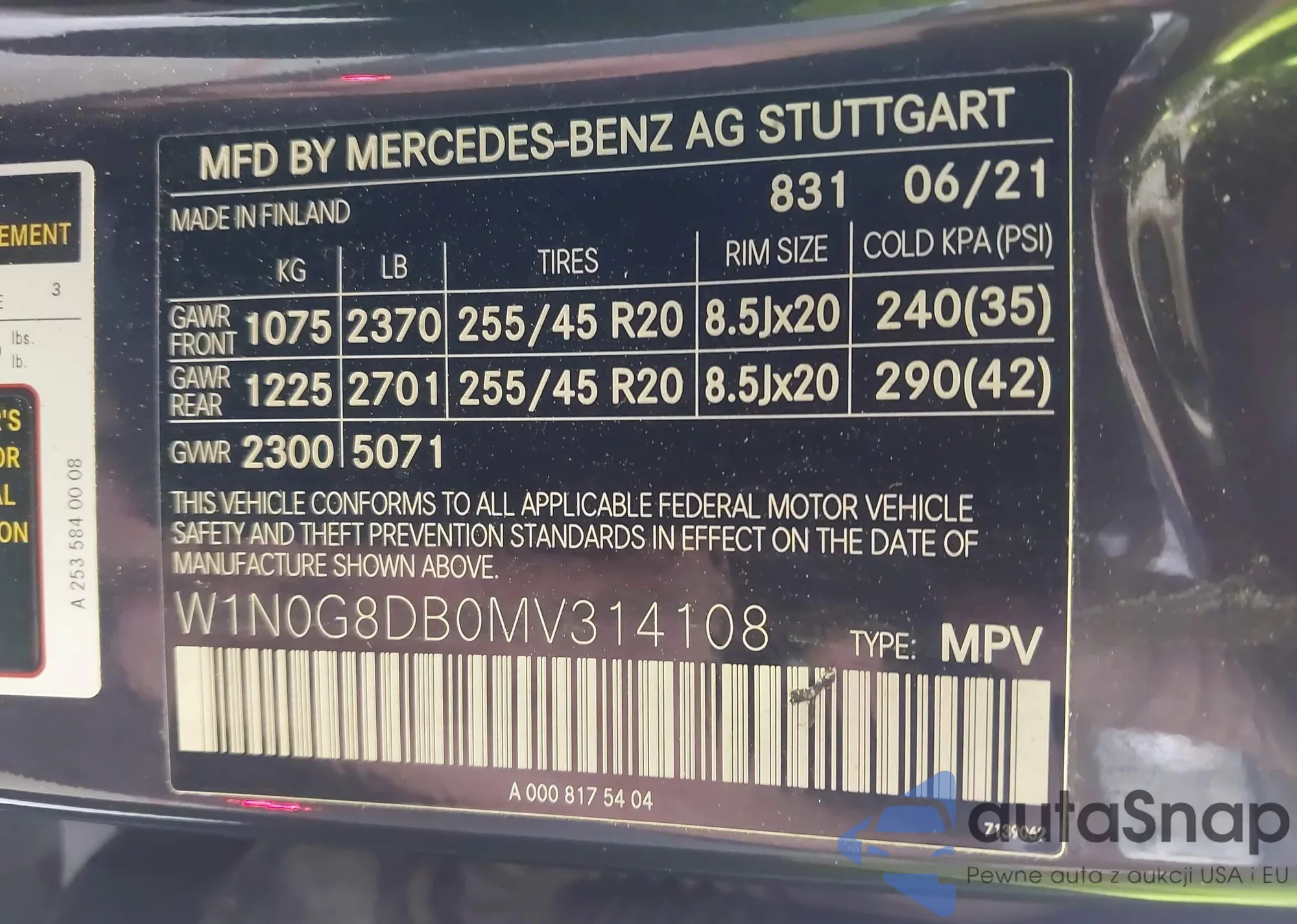 • VIN W1N0G8DB0MV314108