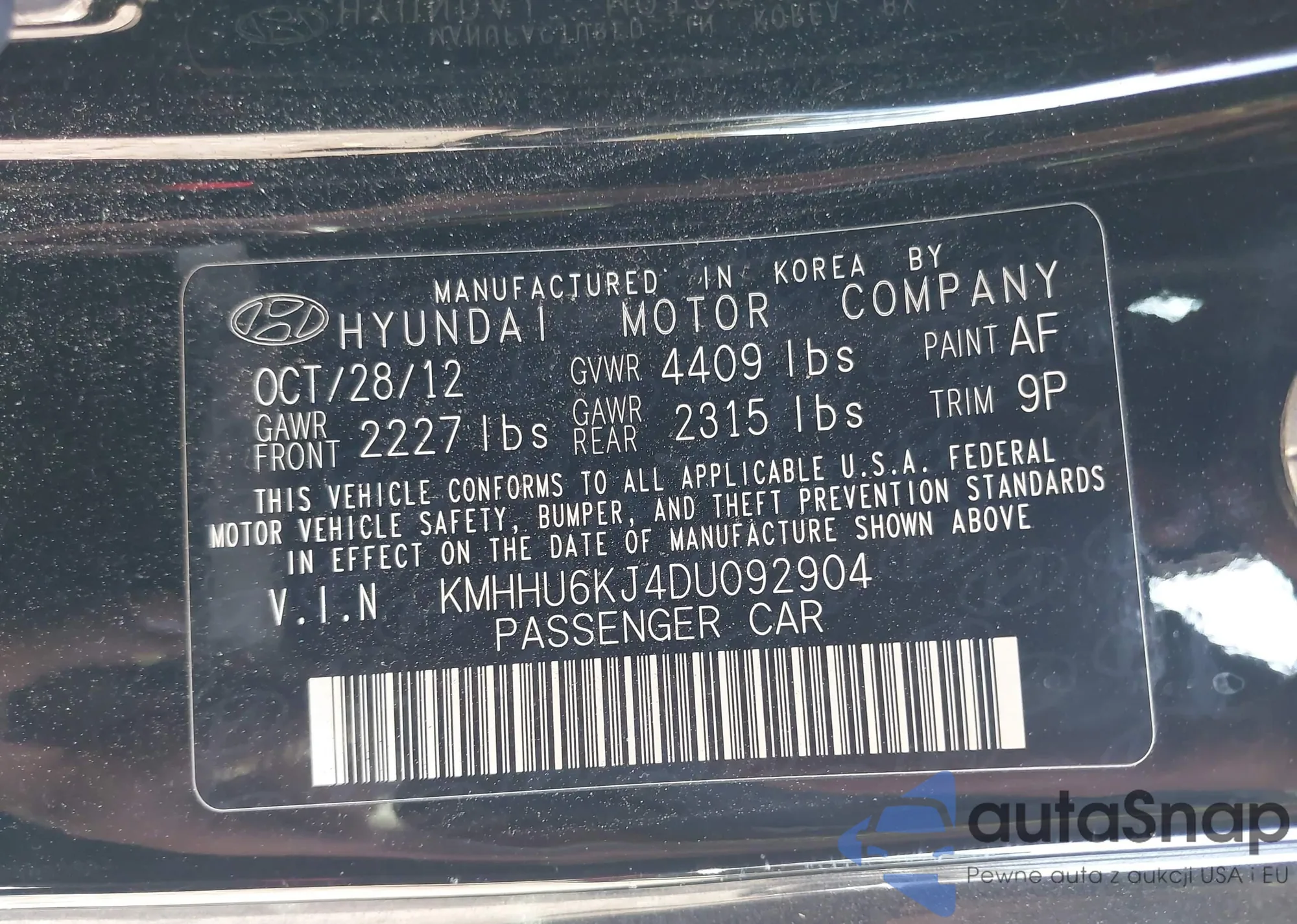 • VIN 5TDDZ3DC7KS225271