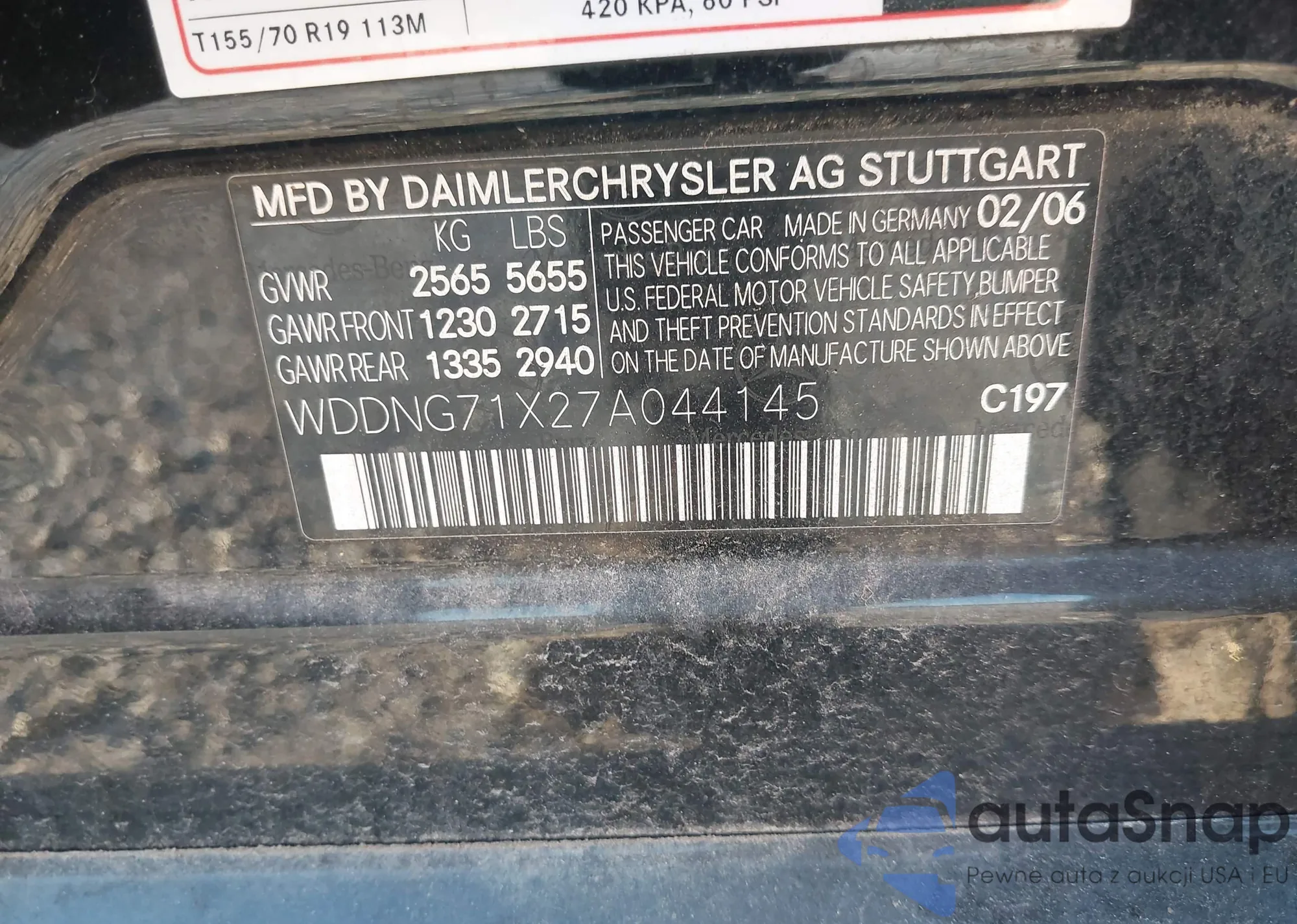 LOT: 43712481 VIN: WDDNG71X27A044145