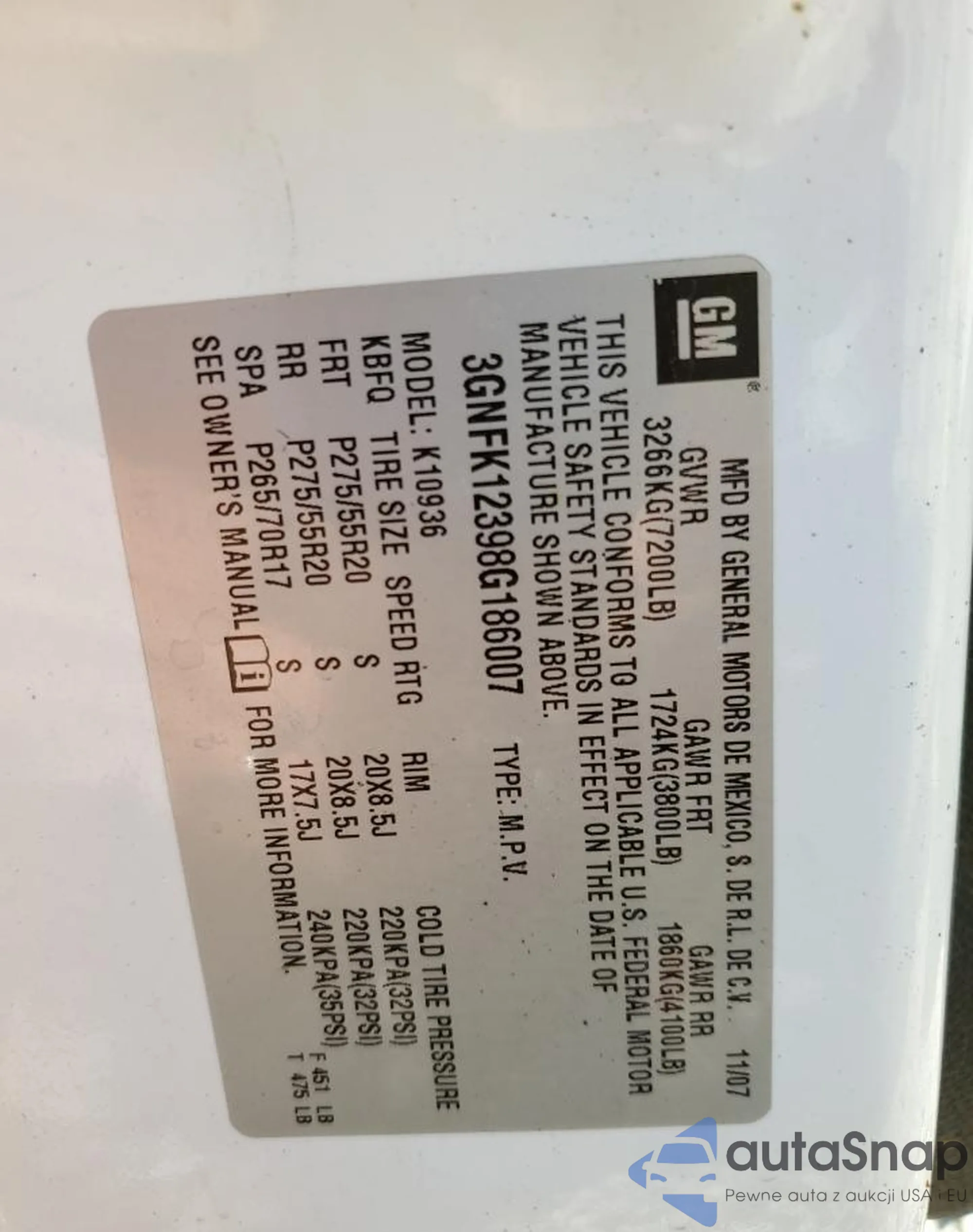 LOT: 92477955 VIN: 3GNFK12398G186007