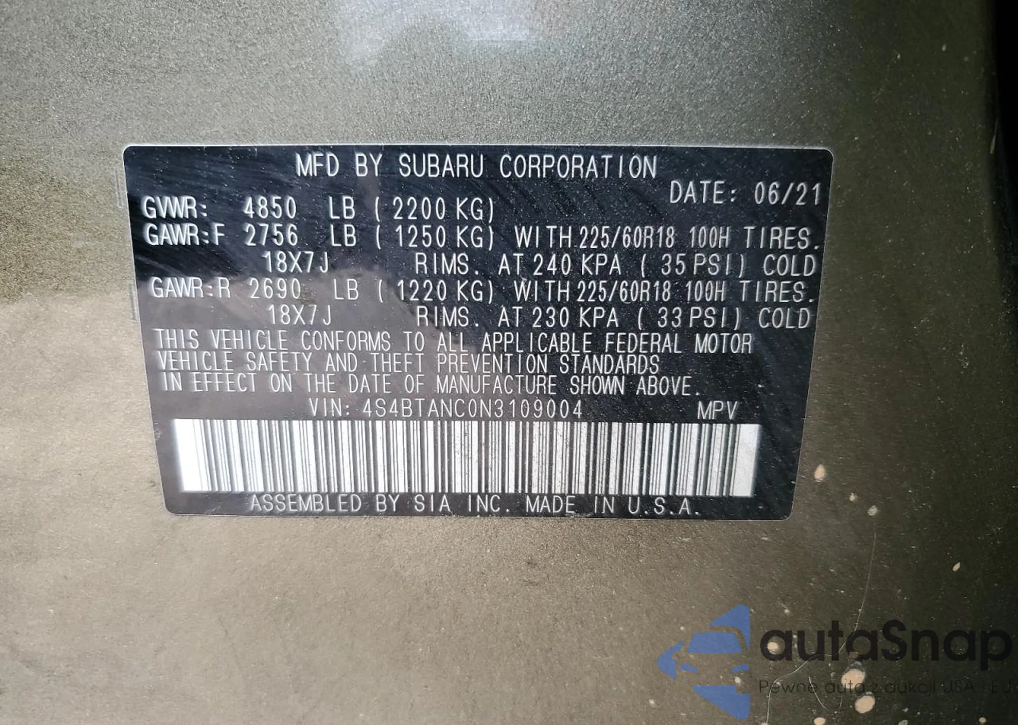 • VIN 2T2AZMAA3MC214240