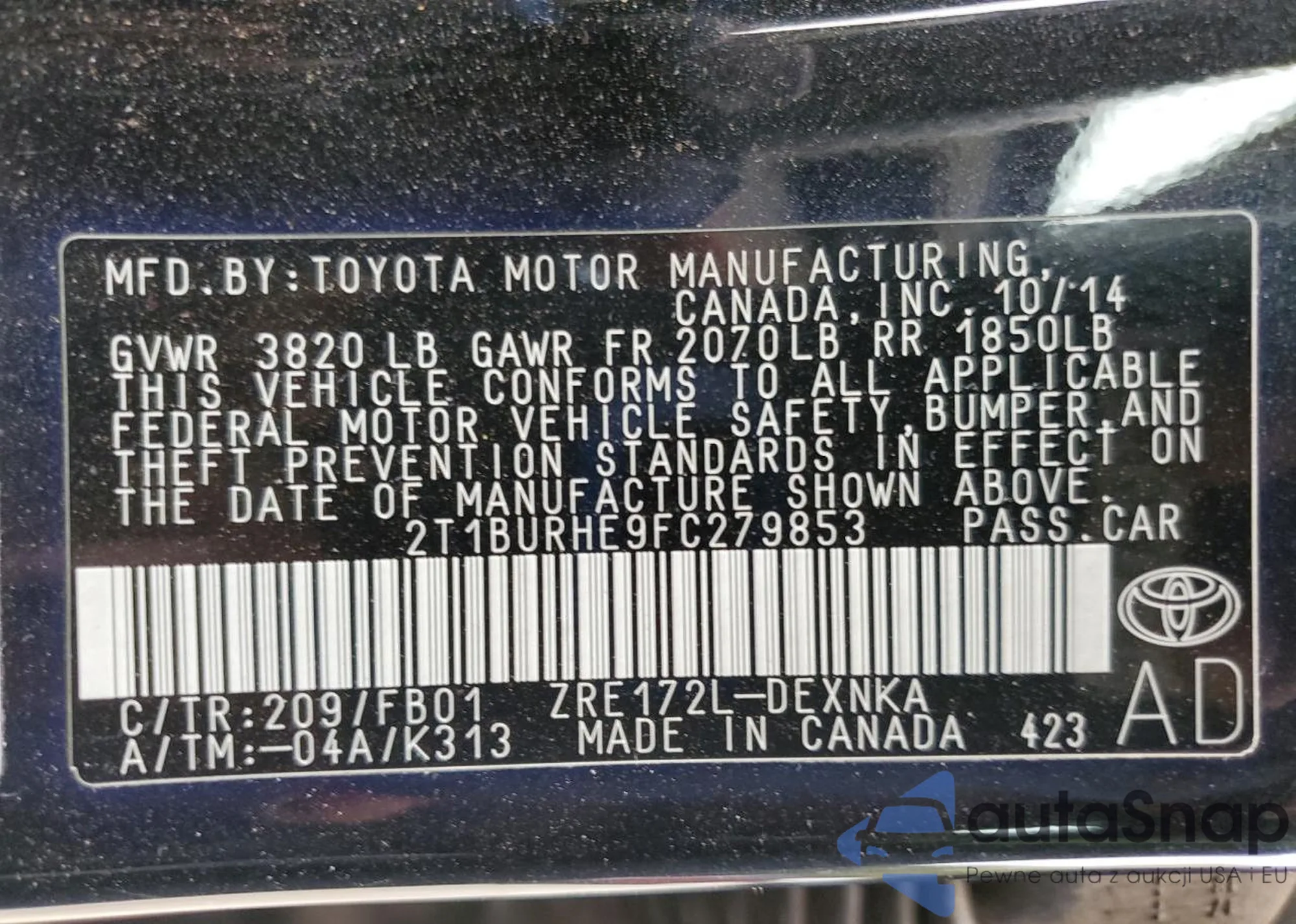 • VIN 2T1BURHE9FC279853