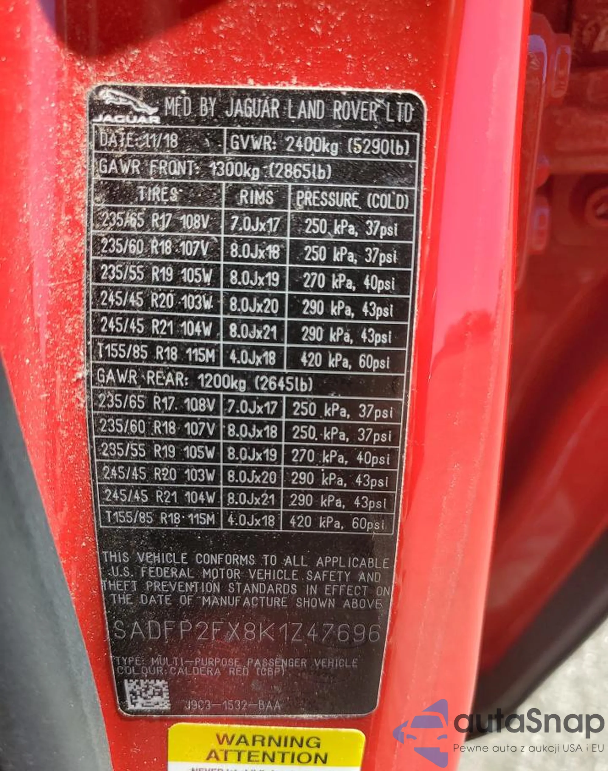 • VIN SALVP2RX0JH270497