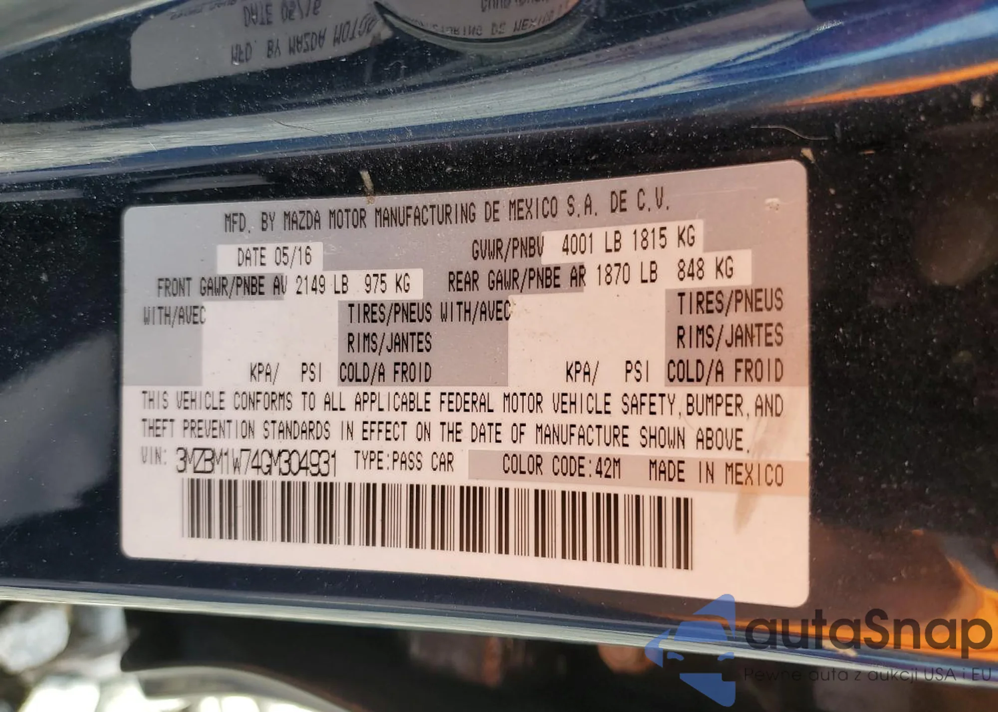 • VIN 3MZBM1W74GM304931