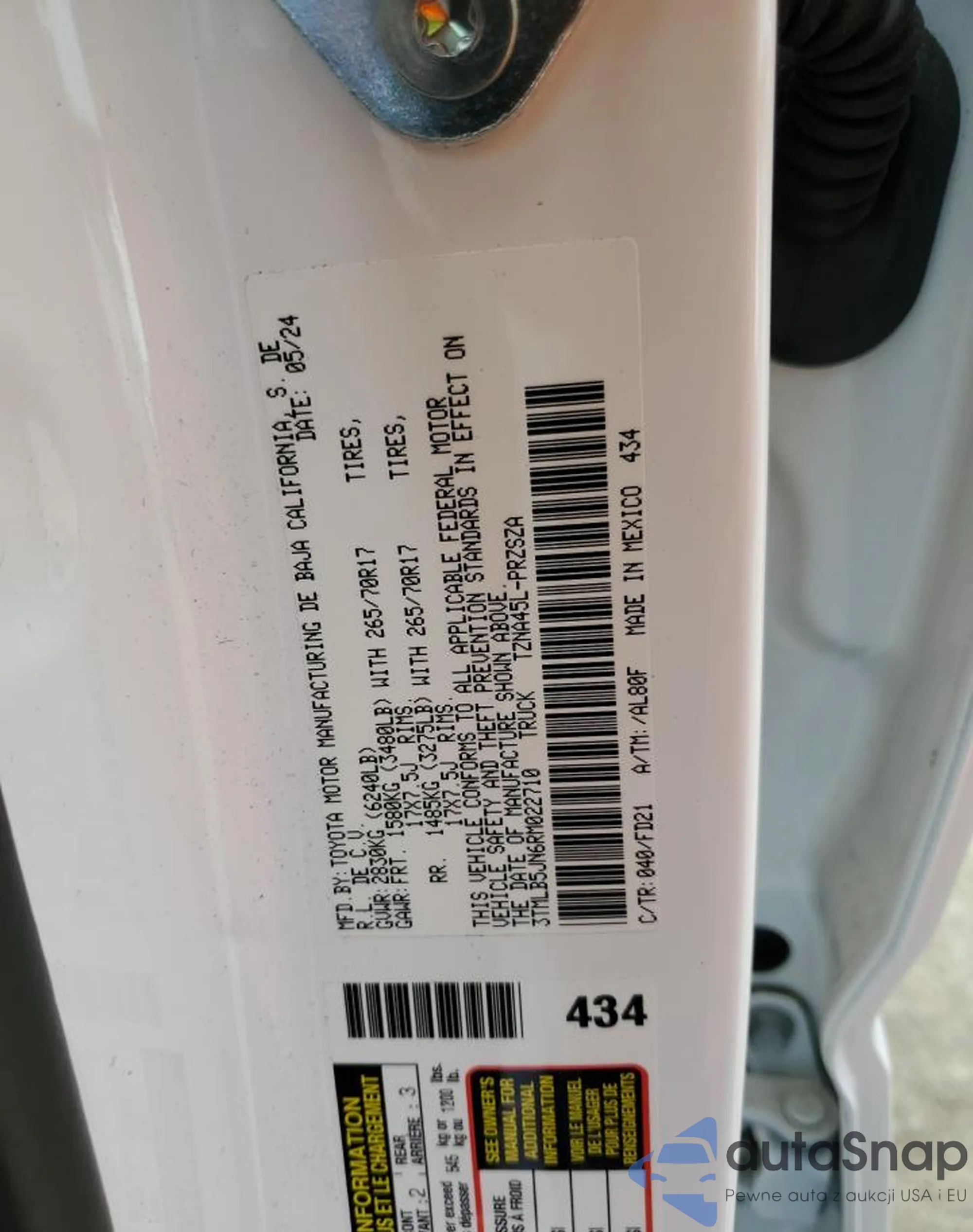 • VIN 3TMLB5JN6RM022710