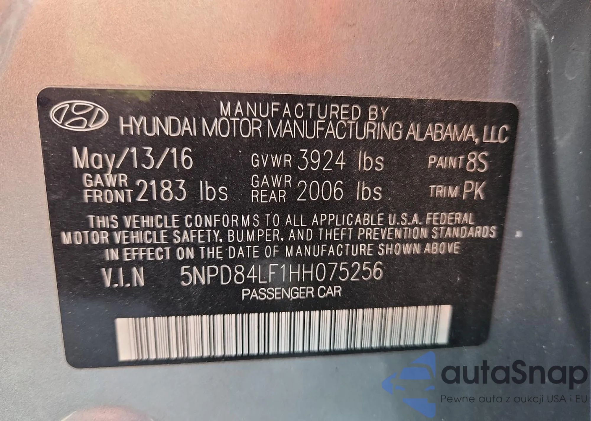 • VIN 5NPD84LF1HH075256