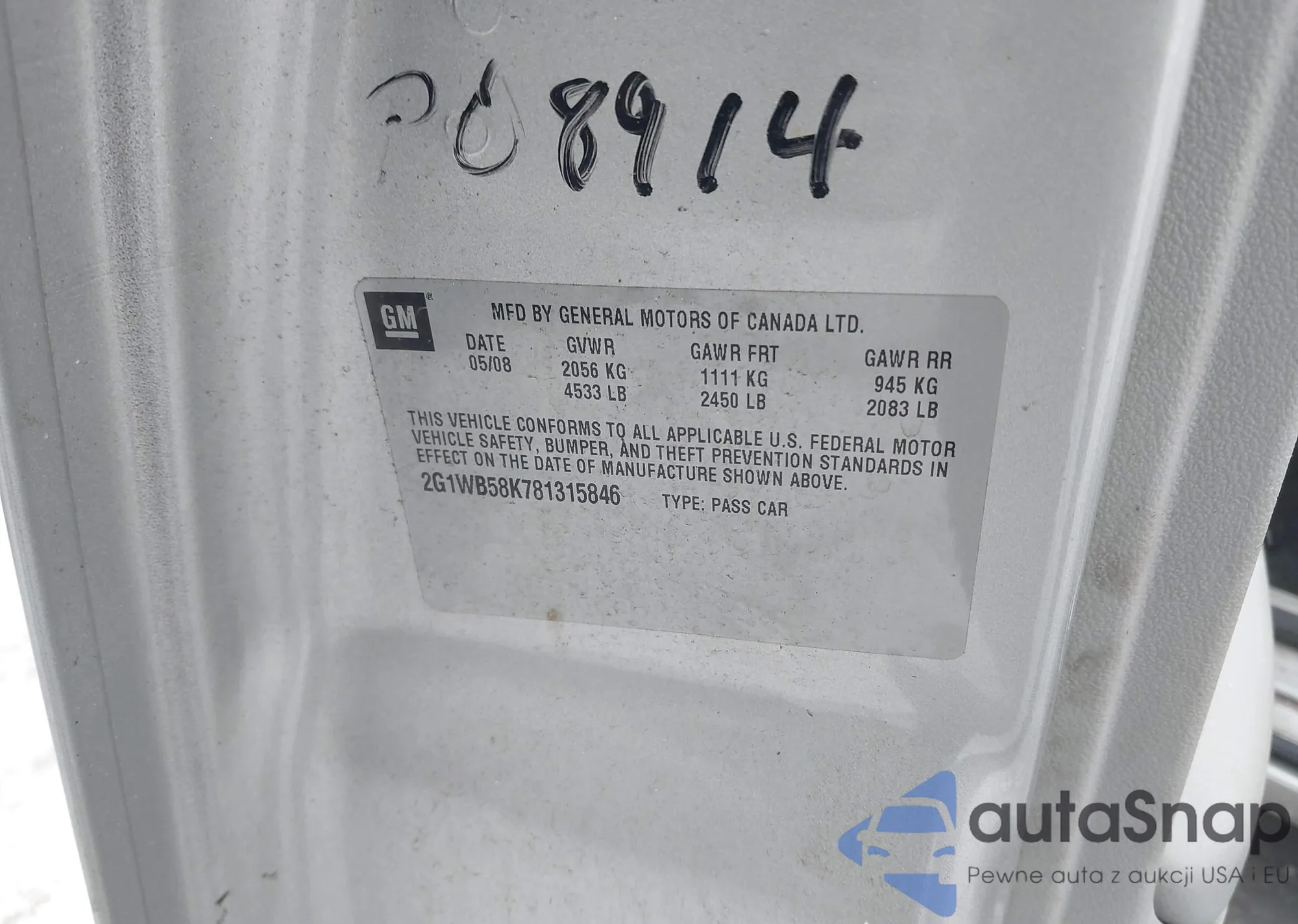 LOT: 41620895 VIN: 2G1WB58K781315846