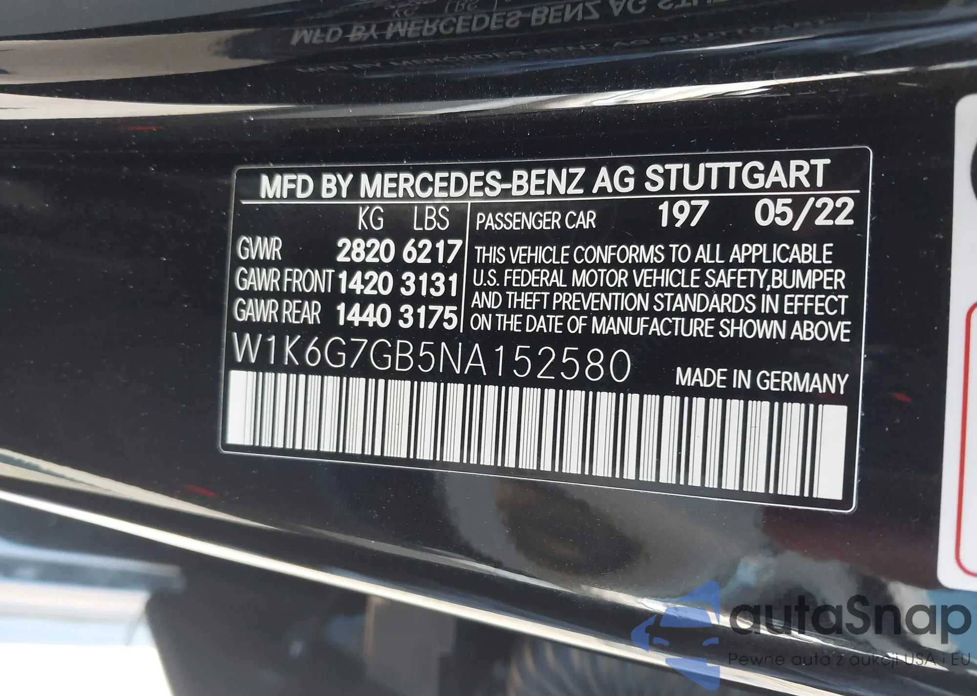 • VIN W1K6G7GB5NA152580