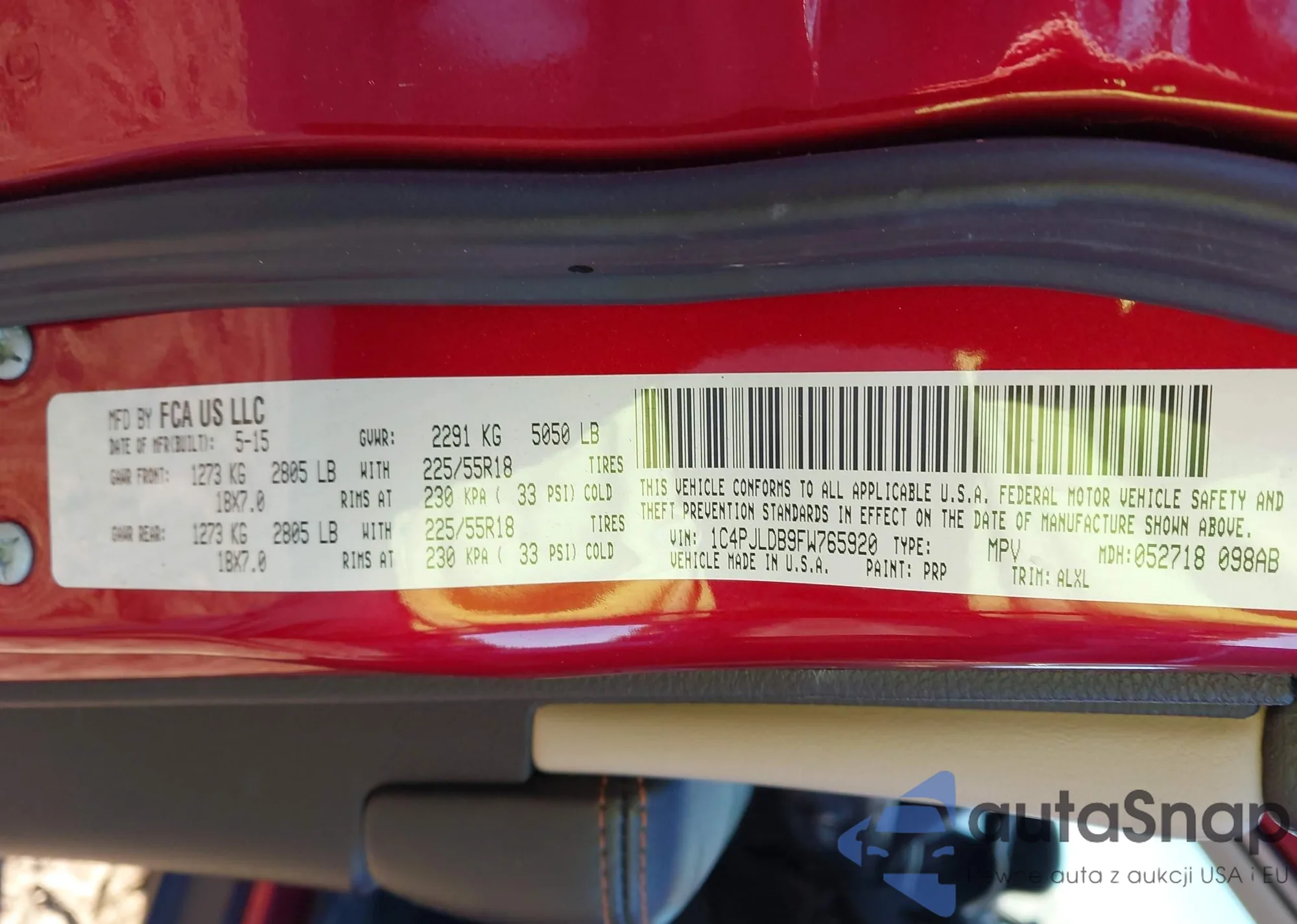 • VIN 1C4PJLDB9FW765920