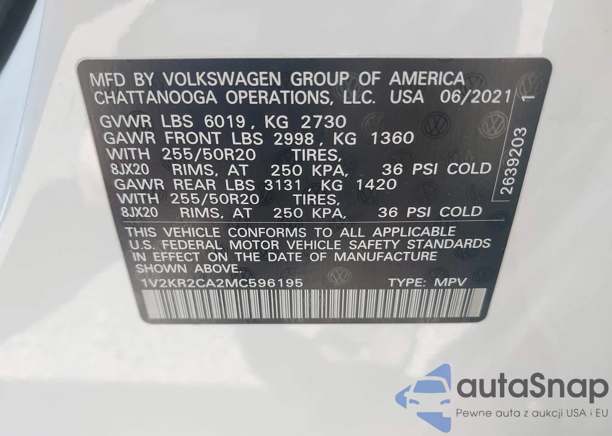 LOT: 43311885 VIN: WVWED7AJ8DW122117