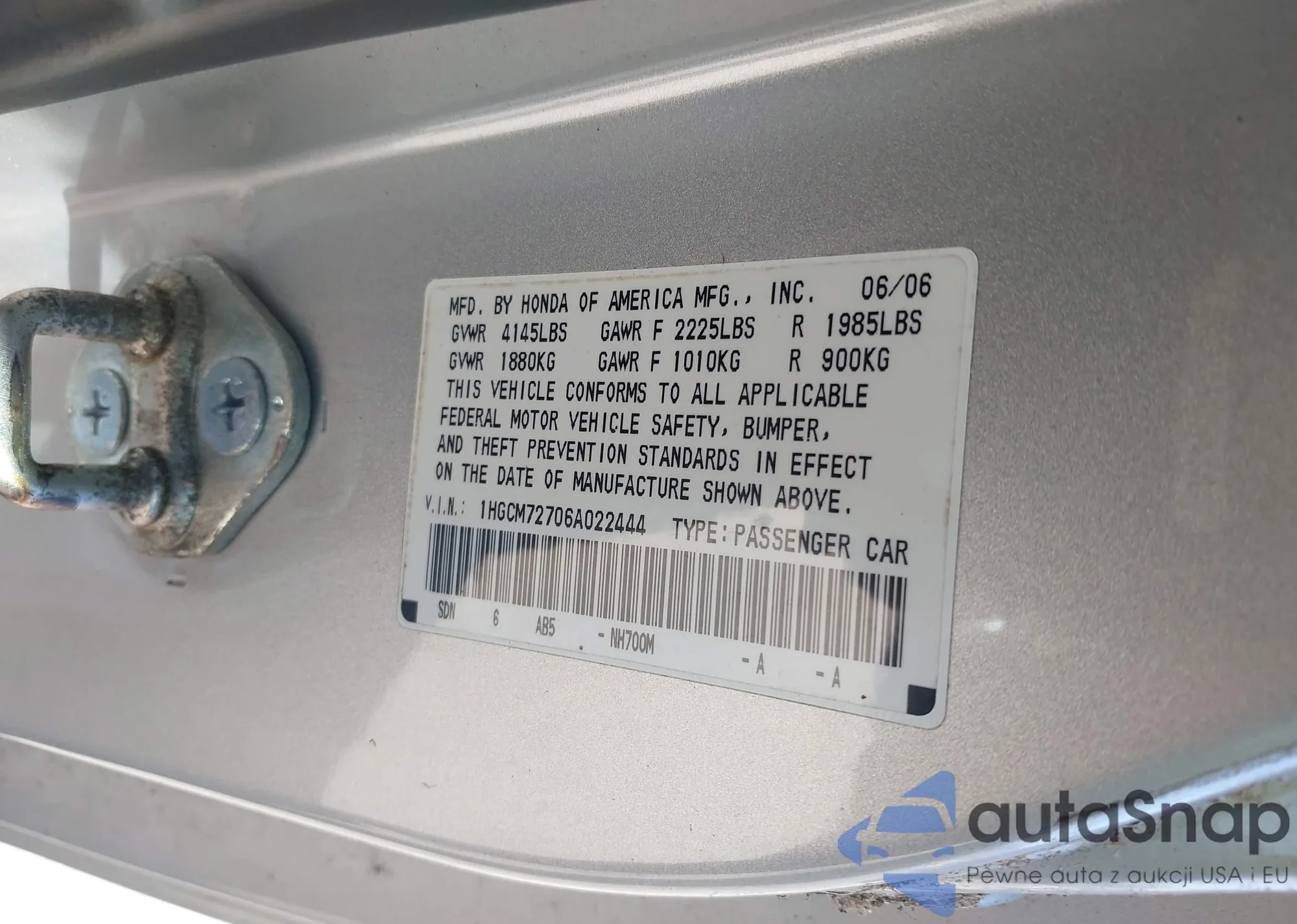 LOT: 43547868 VIN: 1HGCM72706A022444