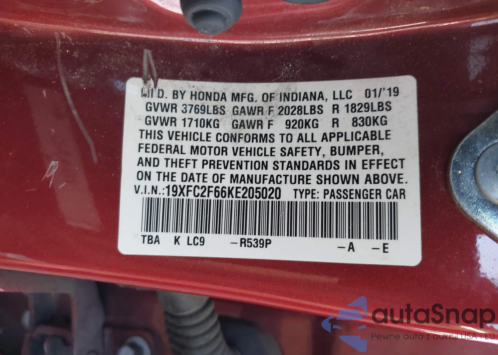 • VIN 19XFC2F66KE205020