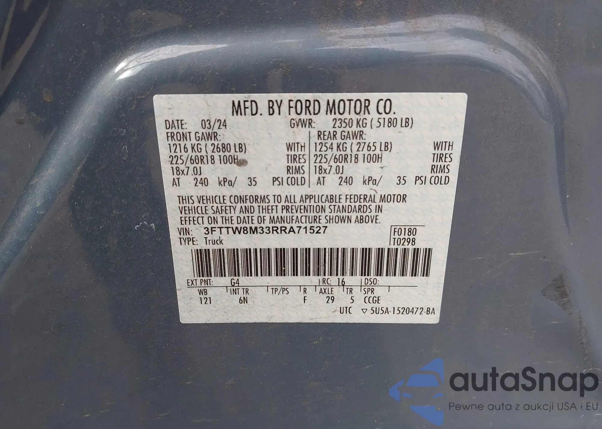 LOT: 43376370 VIN: 3FTTW8M33RRA71527
