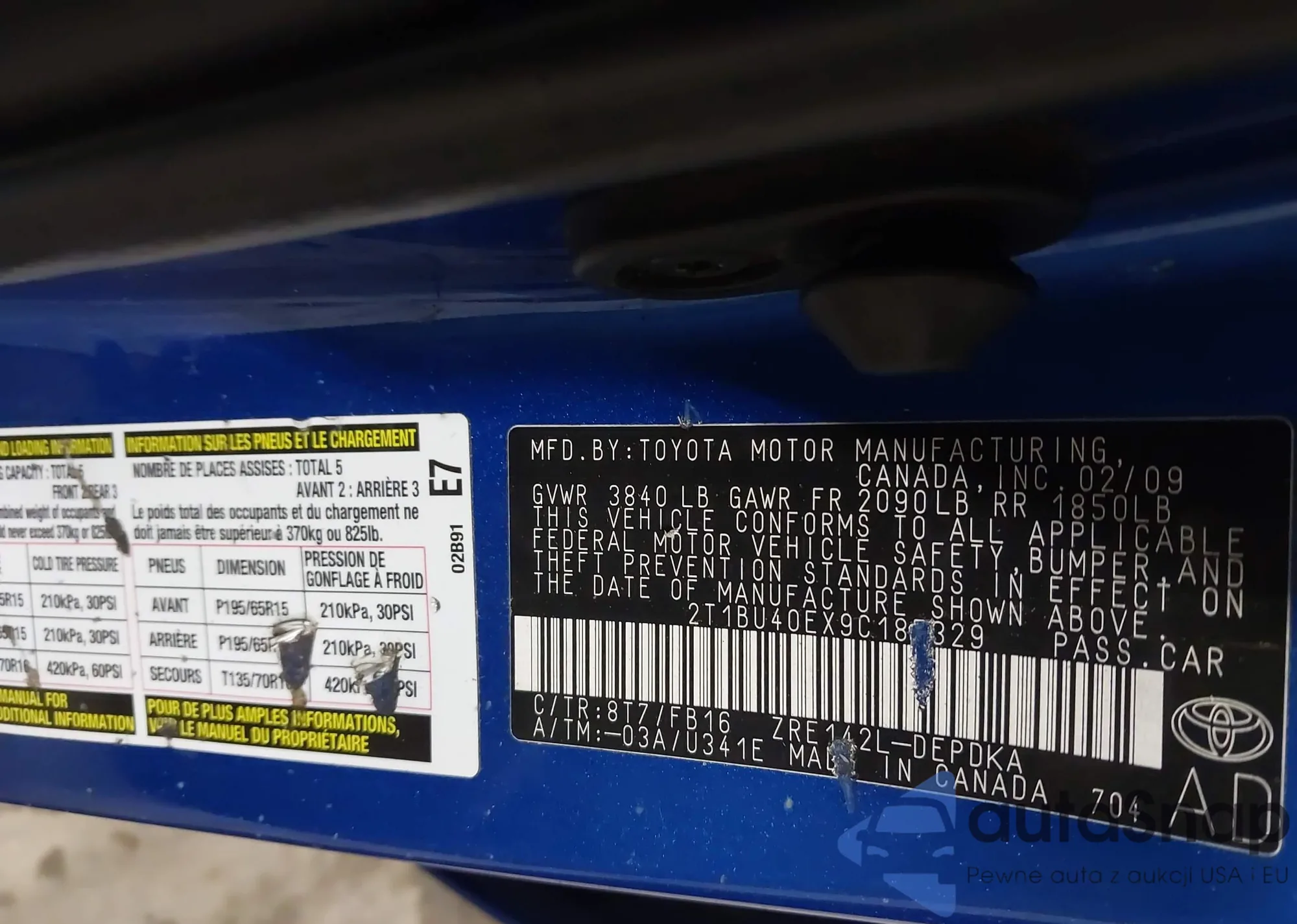 • VIN 2T1BU40EX9C187329
