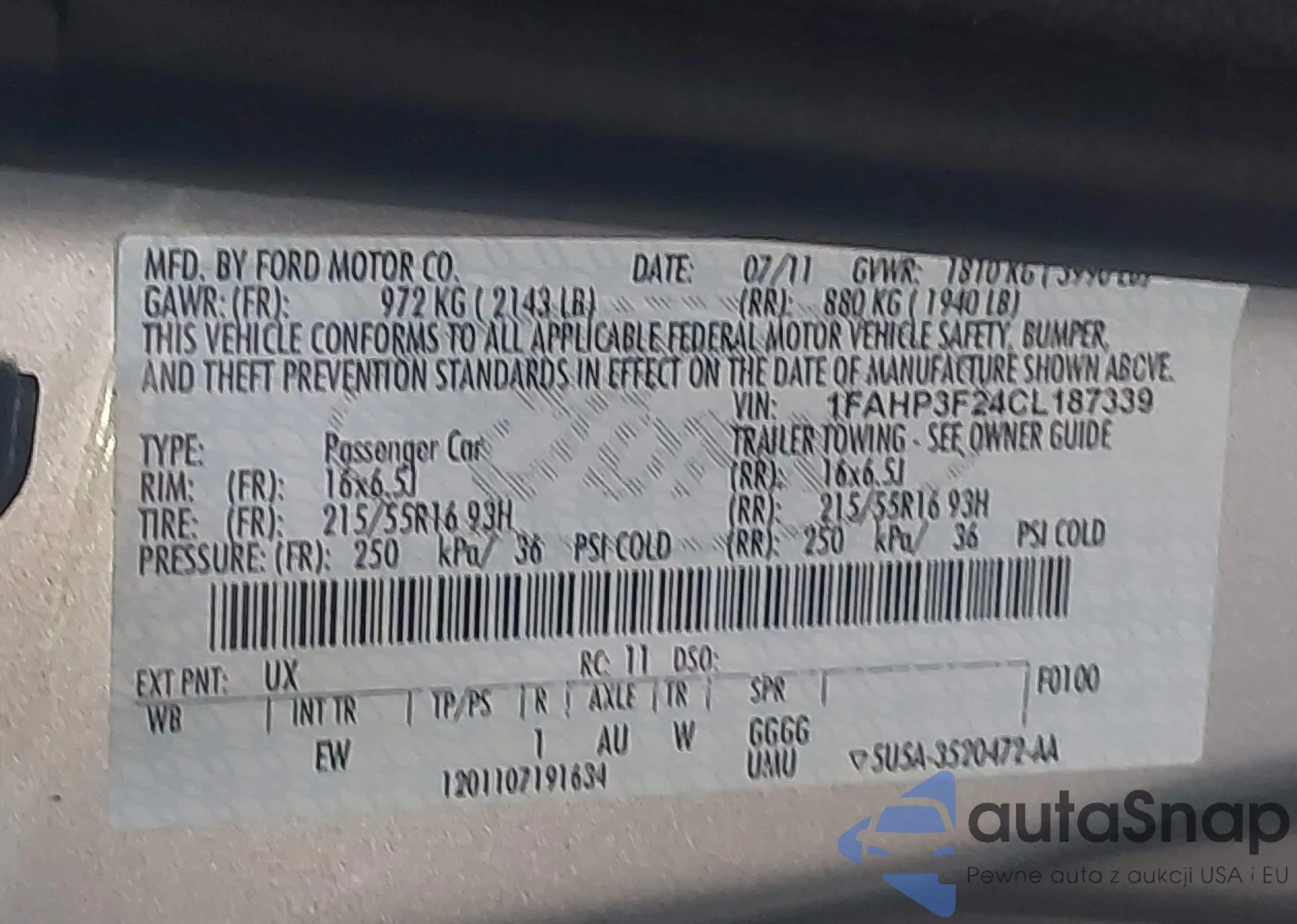 LOT: 43402974 VIN: 1FAHP3F24CL187339