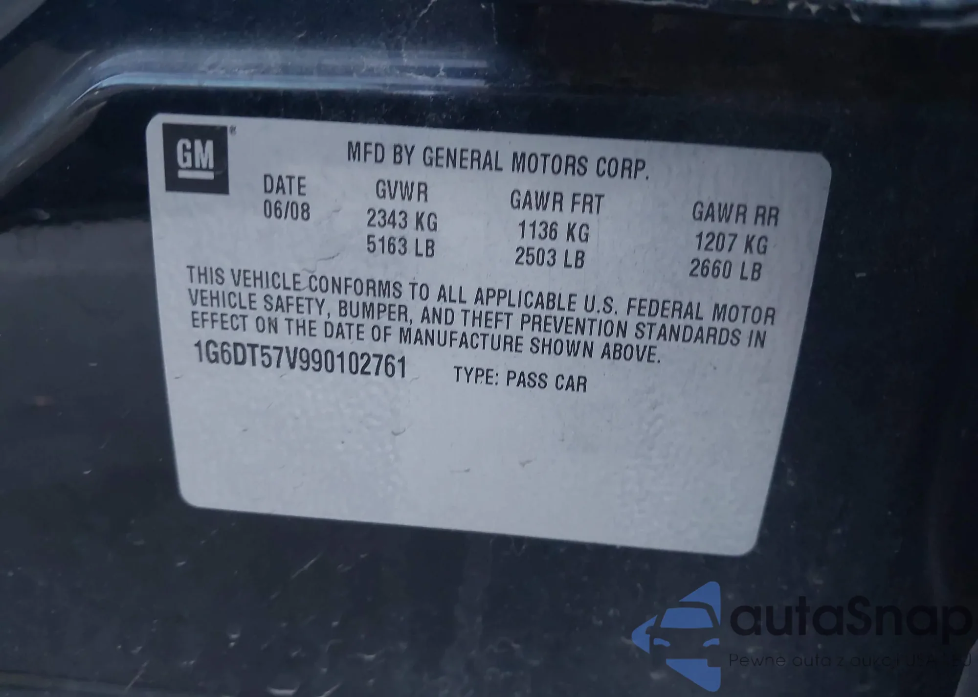 LOT: 42787526 VIN: 1G6DT57V990102761