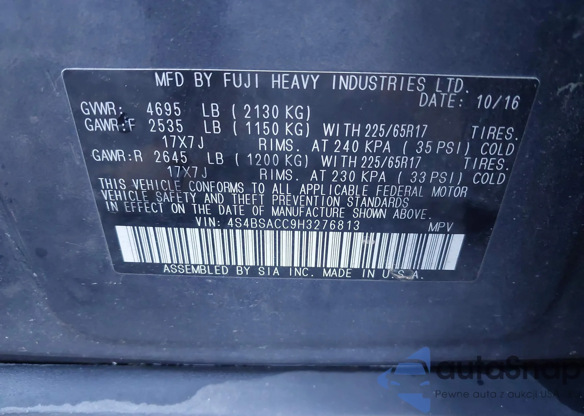 LOT: 43534865 VIN: KNDPC3A61D7351541