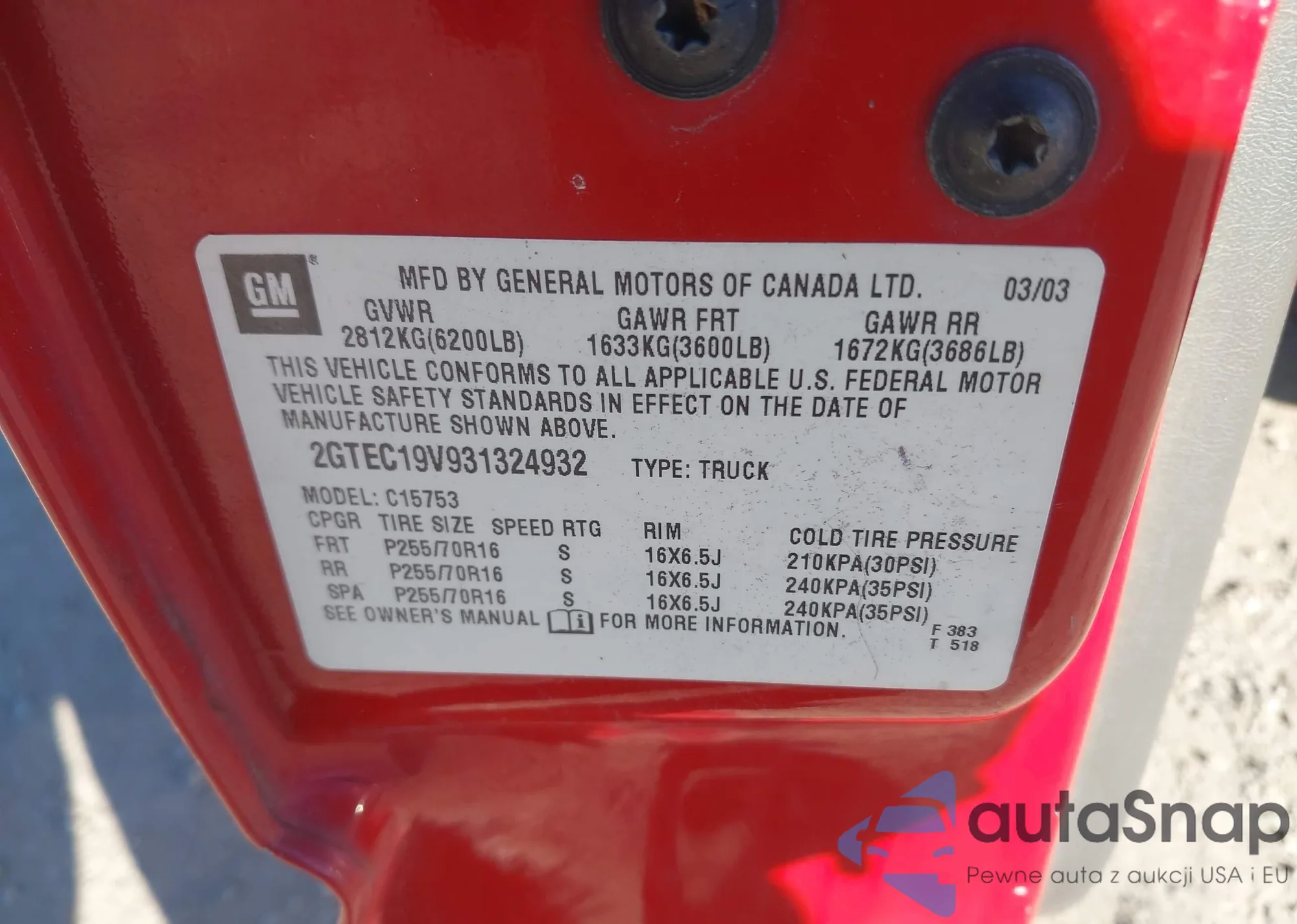 • VIN 3GTP1UEC9EG354933