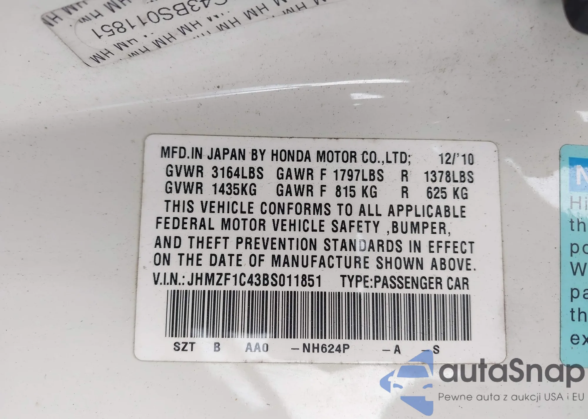 • VIN 1HGCR2F38FA130273