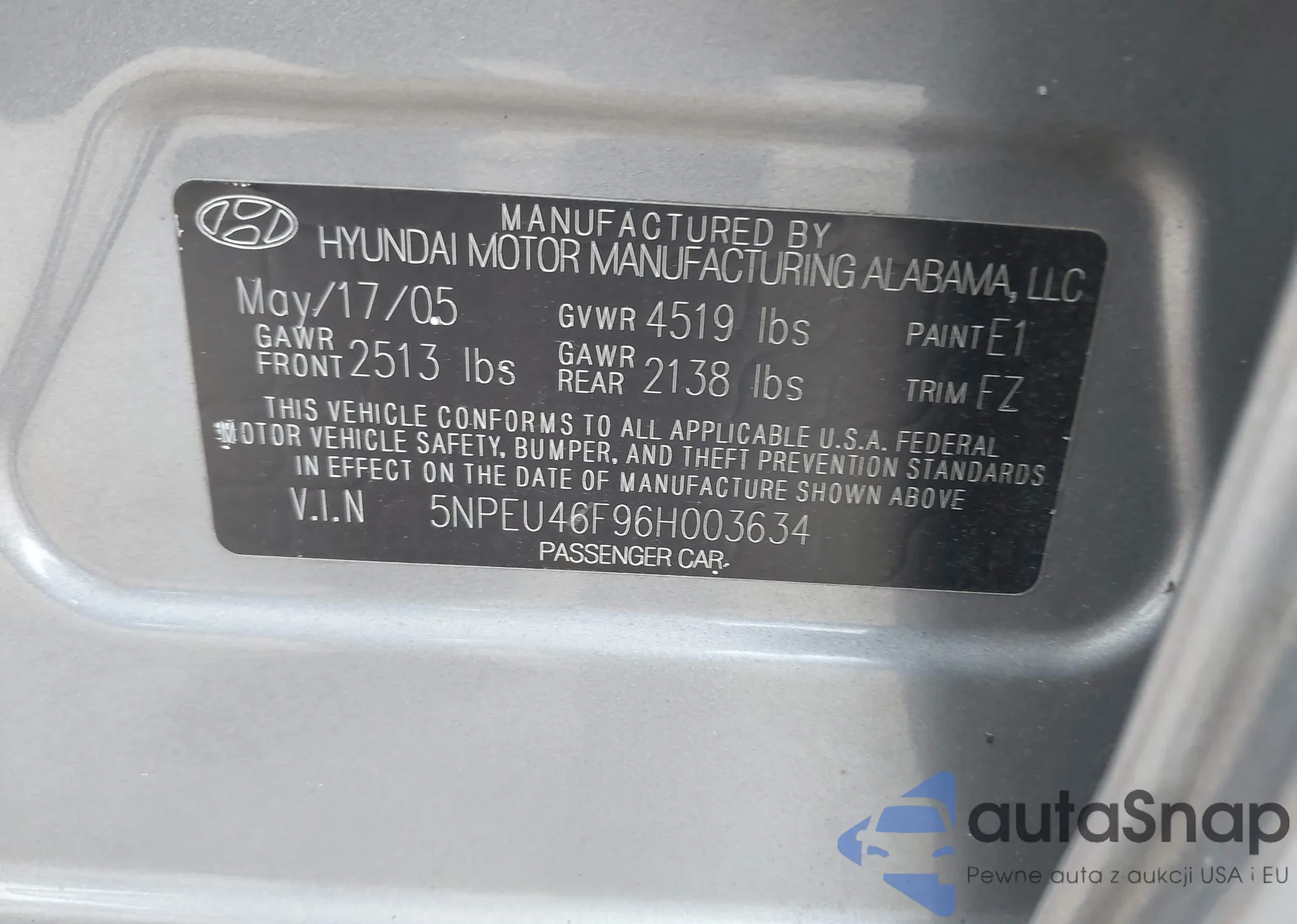 LOT: 43462825 VIN: 5NPDH4AE5CH115194