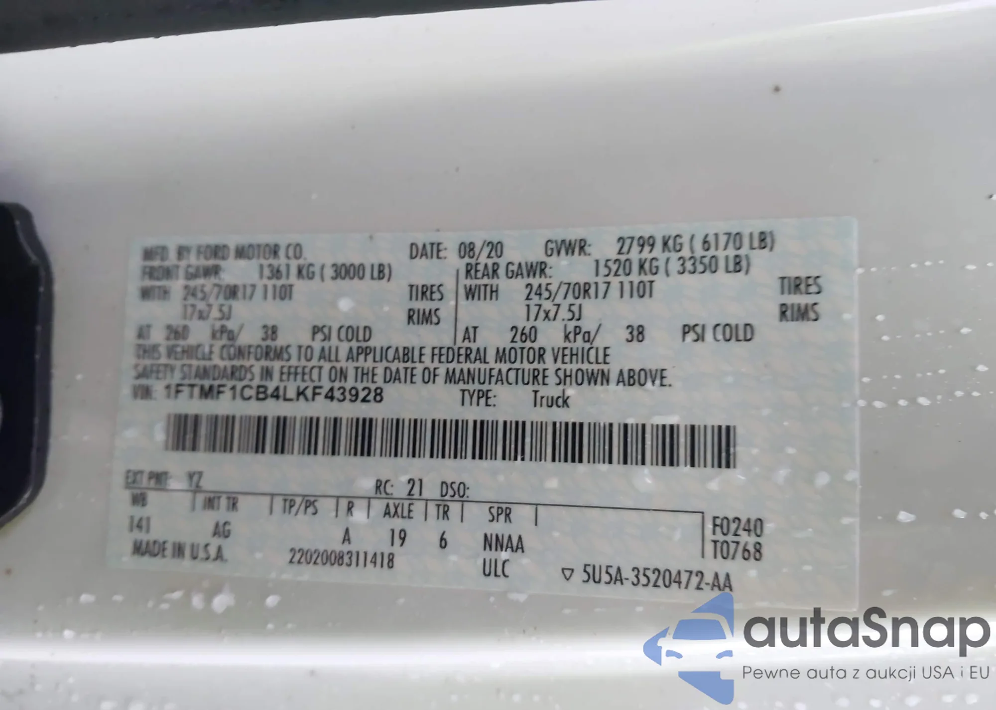 • VIN 1FTMF1CB4LKF43928