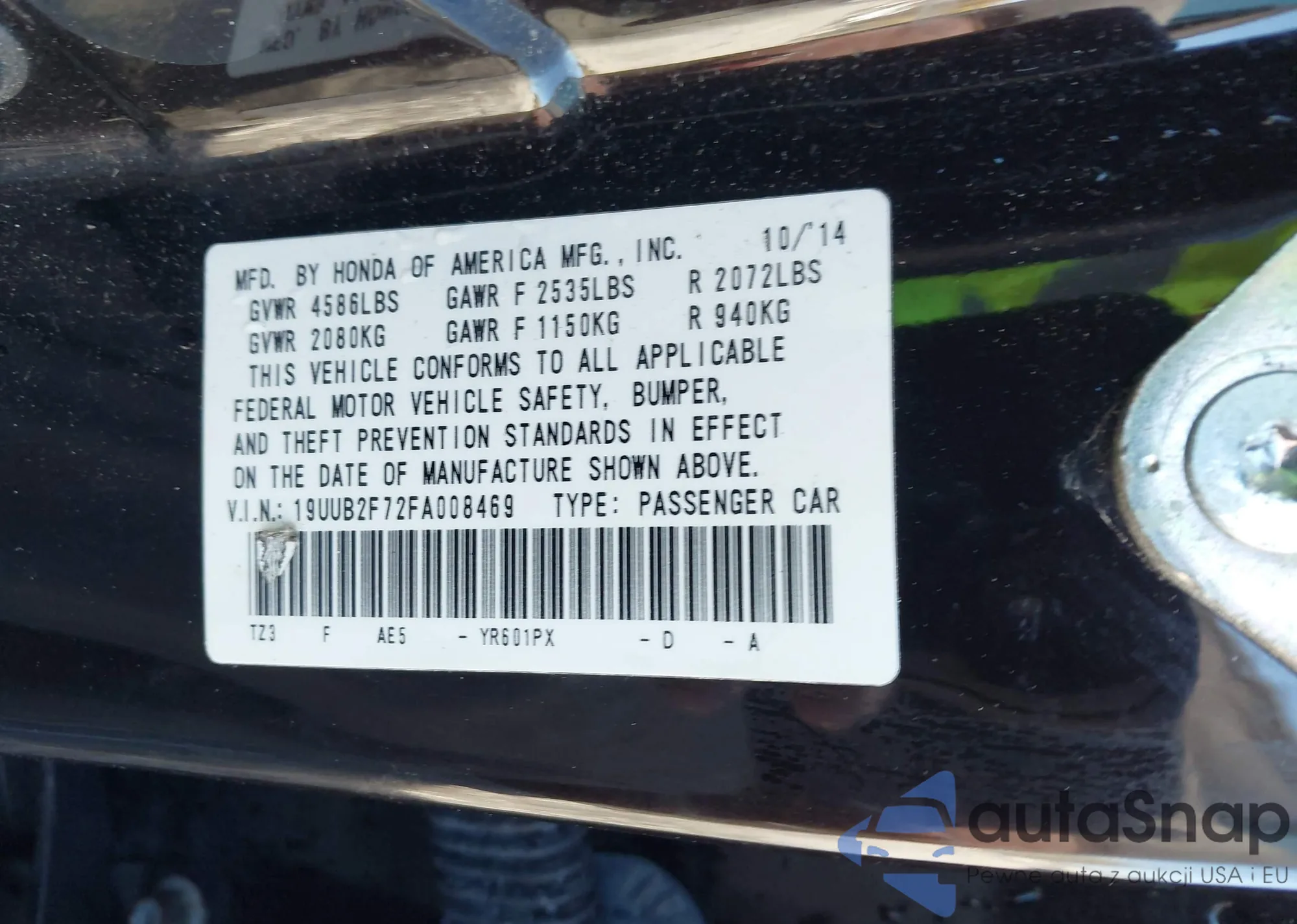 • VIN 19UUB2F72FA008469