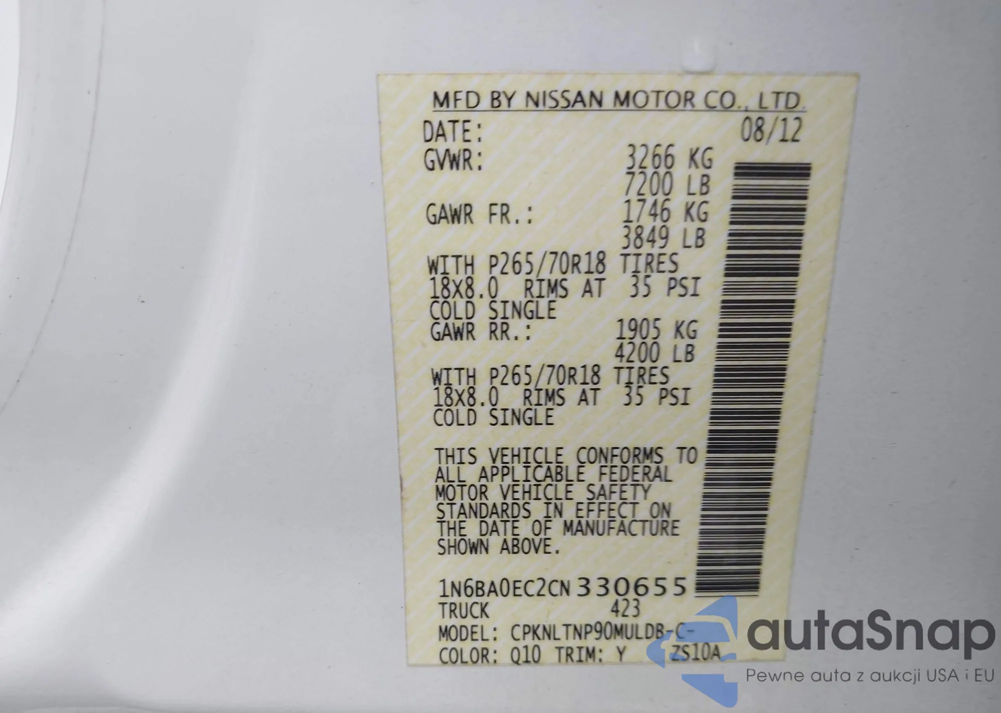 LOT: 43375151 VIN: 1N6BA0EC2CN330655